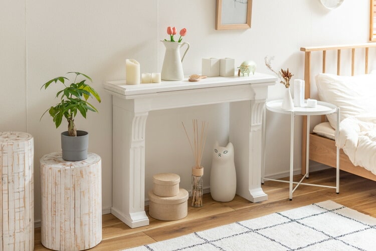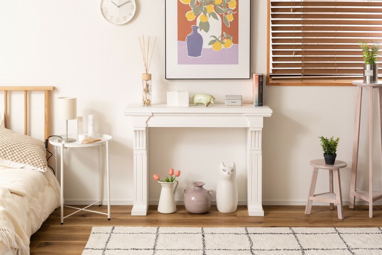 マントルピースにホワイトカラーが登場。細部までこだわった装飾がエレガントな空間を演出します。お部屋はもちろん、玄関先などに置いて生活感を感じさせないおしゃれな空間づくりとしても活躍します。流行の韓国インテリアとしてもおすすめです。 ※韓国インテリアとは、ホワイト系の色を中心としたくすんだ淡色を使い、木製の家具、ファブリックアイテム、ラタン調アイテムでコーディネートされたインテリア。
