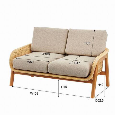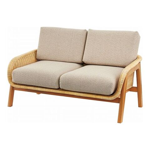 ソファ 2人掛 幅115×奥行78×高さ7 座面高40 ラタン 天然木 ラッカー塗装 ポリプロピレン ポリエステル【送料無料】