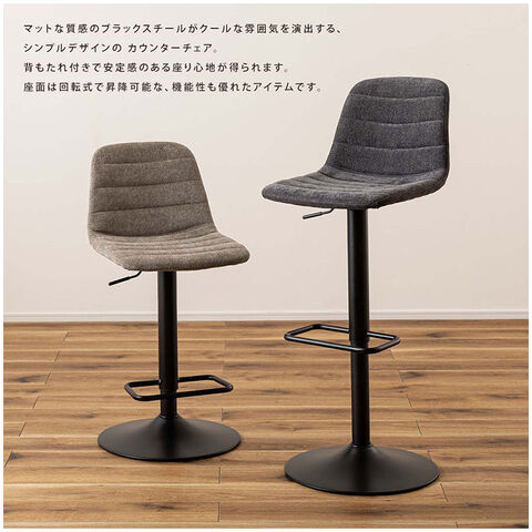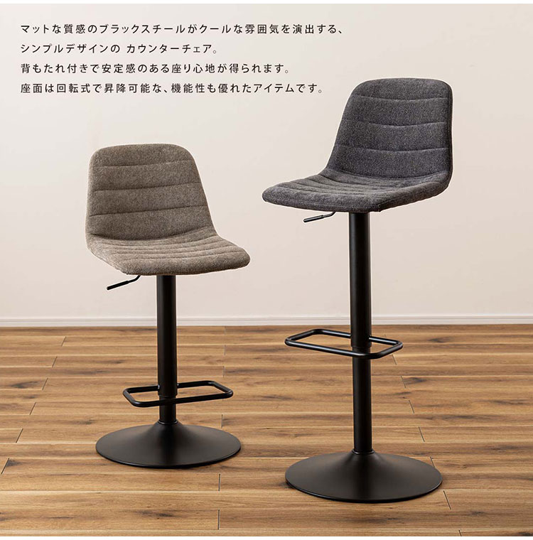 ●マットな質感のブラックスチールがクールな雰囲気を演出する、シンプルデザインのカウンターチェア。