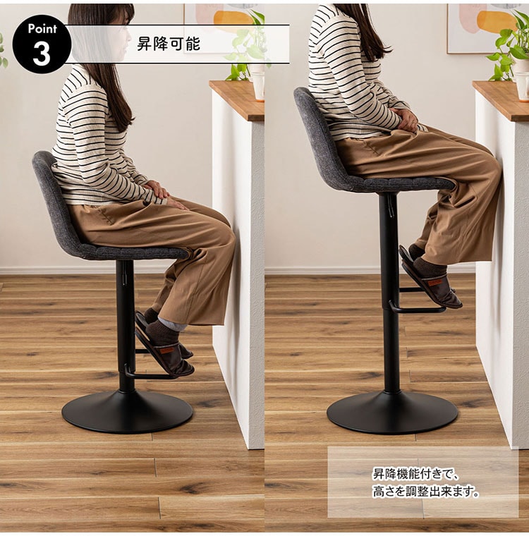 ●座面は回転式で昇降可能な、機能性も優れたアイテム。