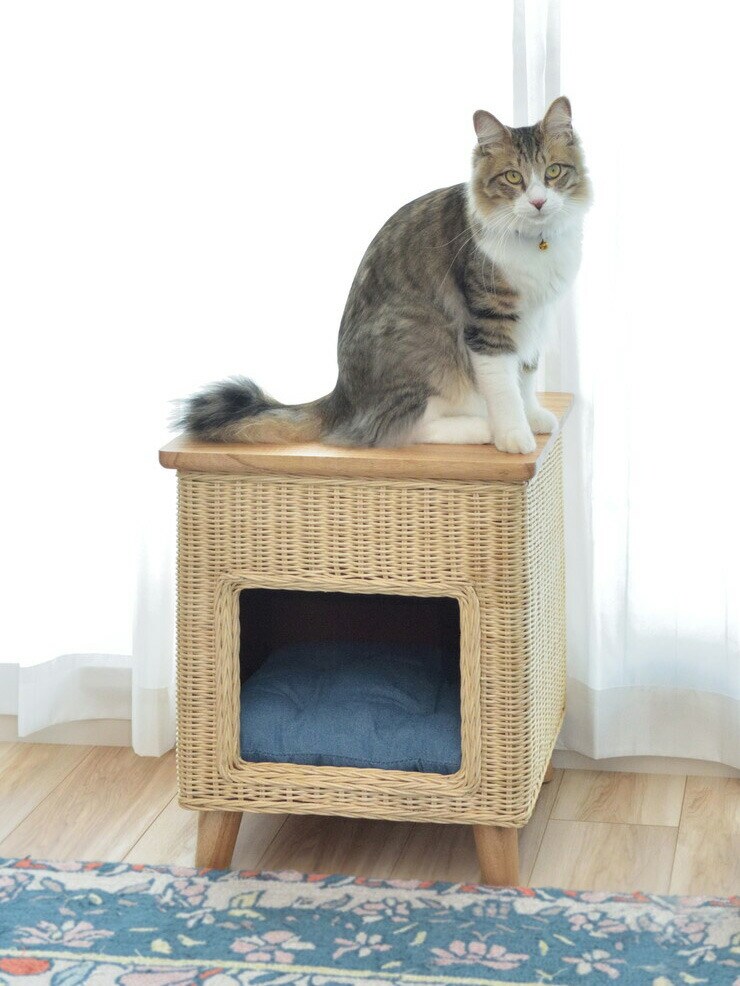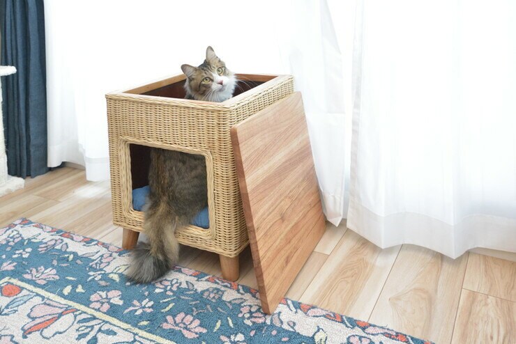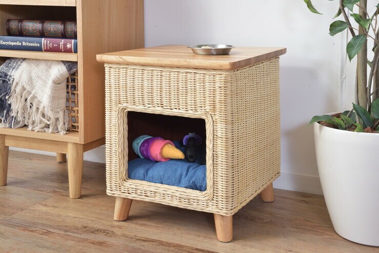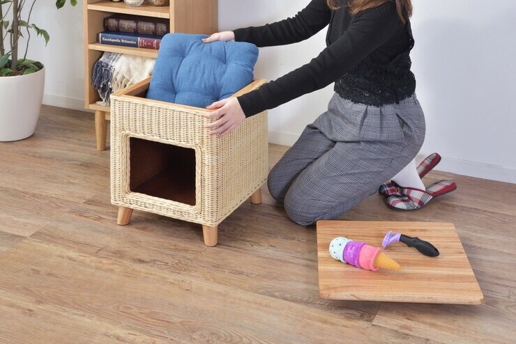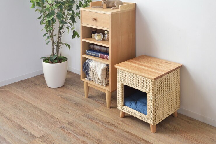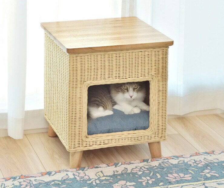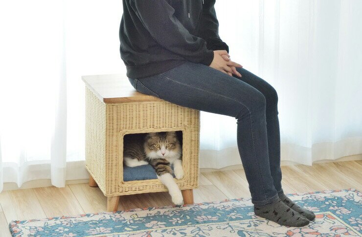 ペットと一緒にくつろぐことができるペットハウススツール。スツールとしてはもちろん、テーブルとしても使用できます。
