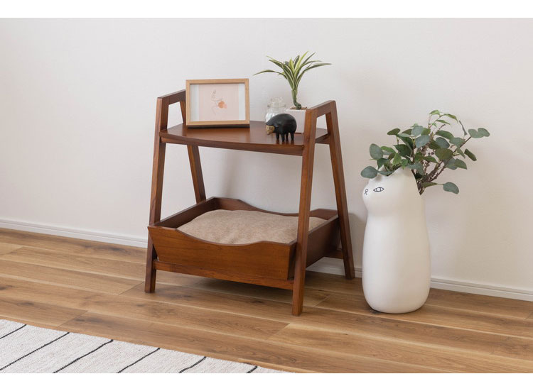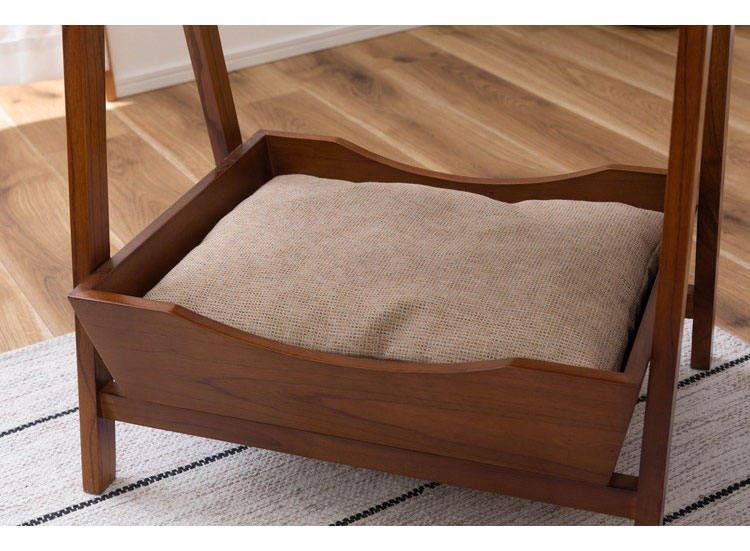 ペットベッド サイドテーブル テーブル ペット 犬 猫 ウサギ シンプル おしゃれ 北欧 持ち手 ハンドル クッション付き 木製 天然木 ナチュラル ブラウン リビング 高さ60cm【送料無料】