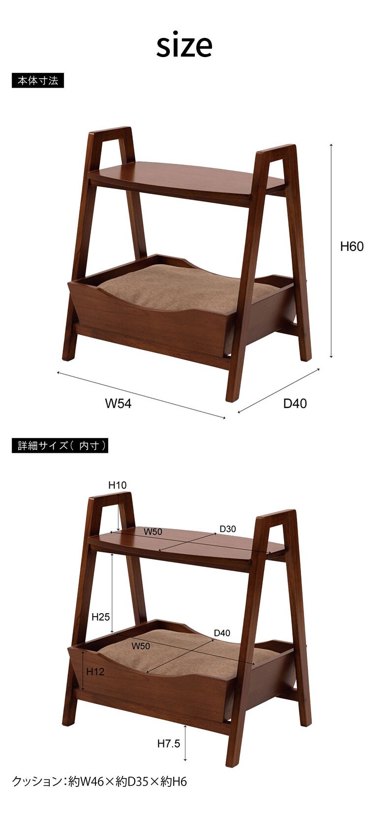 取り外し可能なやわらかいクッションでペットのくつろげる場所になり、上部のテーブルはサイドテーブルとしてもお使いいただけます。