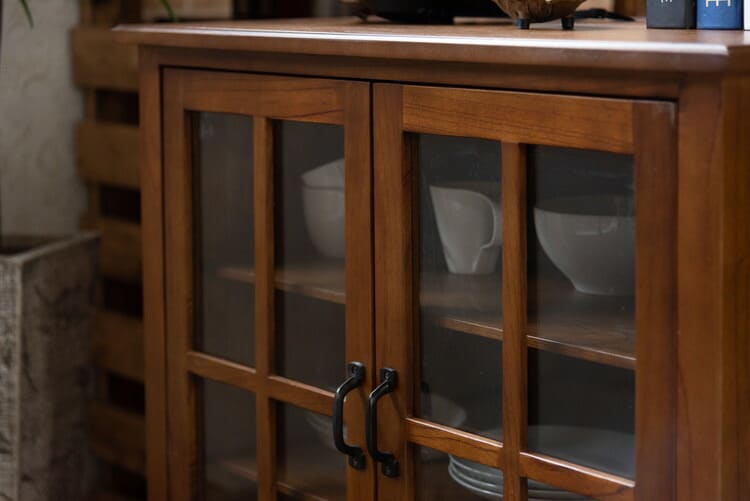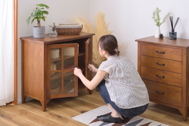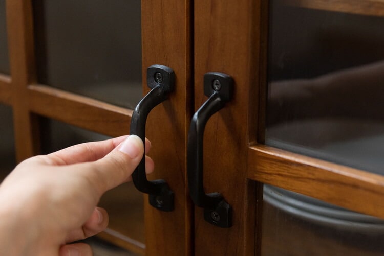 キャビネット ミンディ材 天然木 アンティーク スリム 省スペース 小さめ 黒アイアン ブラウン 収納 扉付き 棚付き ガラス扉 おしゃれ 模様替え【送料無料】