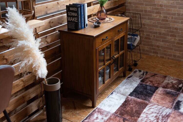 天然木の豊かな風合いと統一感のある黒アイアンが特徴の