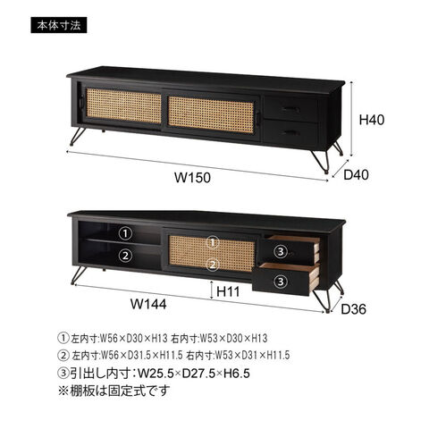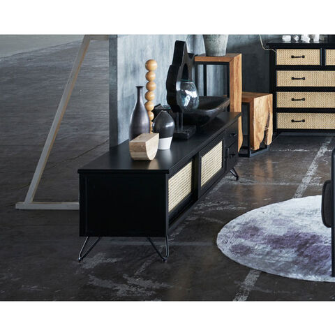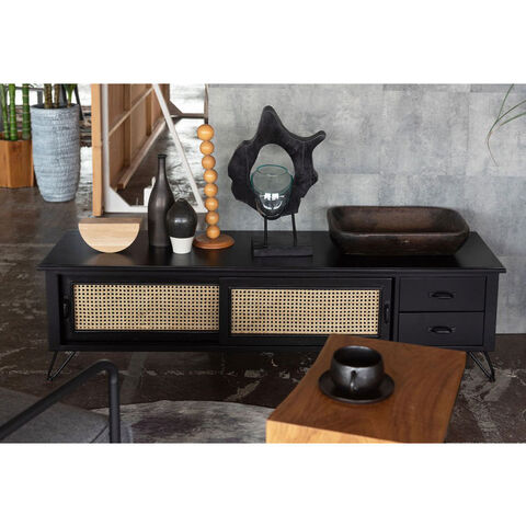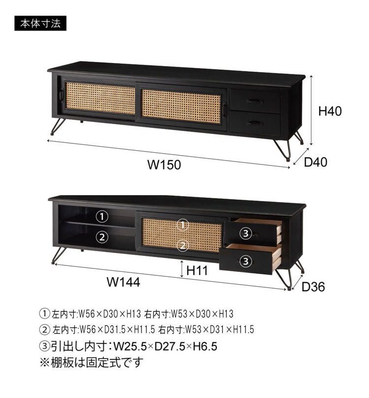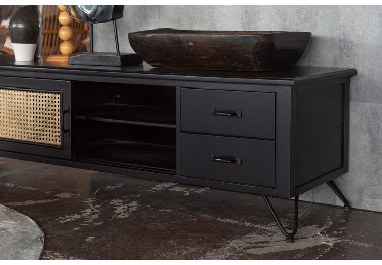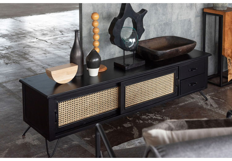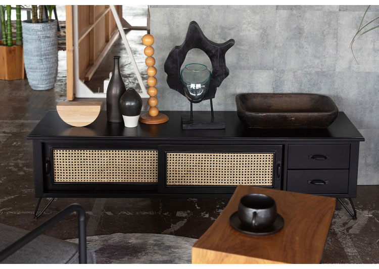 ●天然ラタンを使用したブラックカラーのTVボード&チェスト