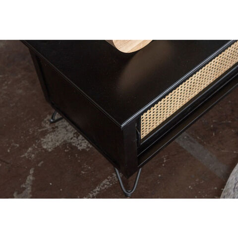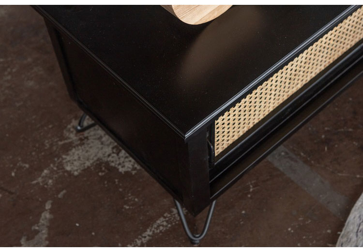 ●温かみがありながら、クールな印象も与えるブラックのウッド素材と、モダンな雰囲気のある天然ラタンの組み合わせは重厚感あるブラックにラタンのベージュが差し色になり、お部屋に圧迫感を与えず抜け感のあるトレンド感溢れるデザインに。