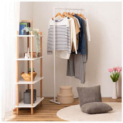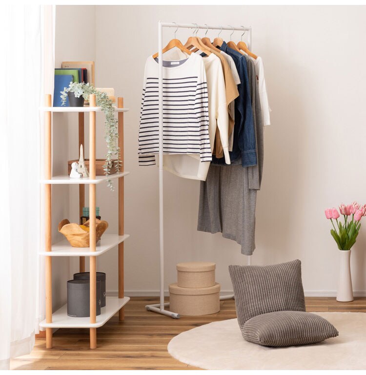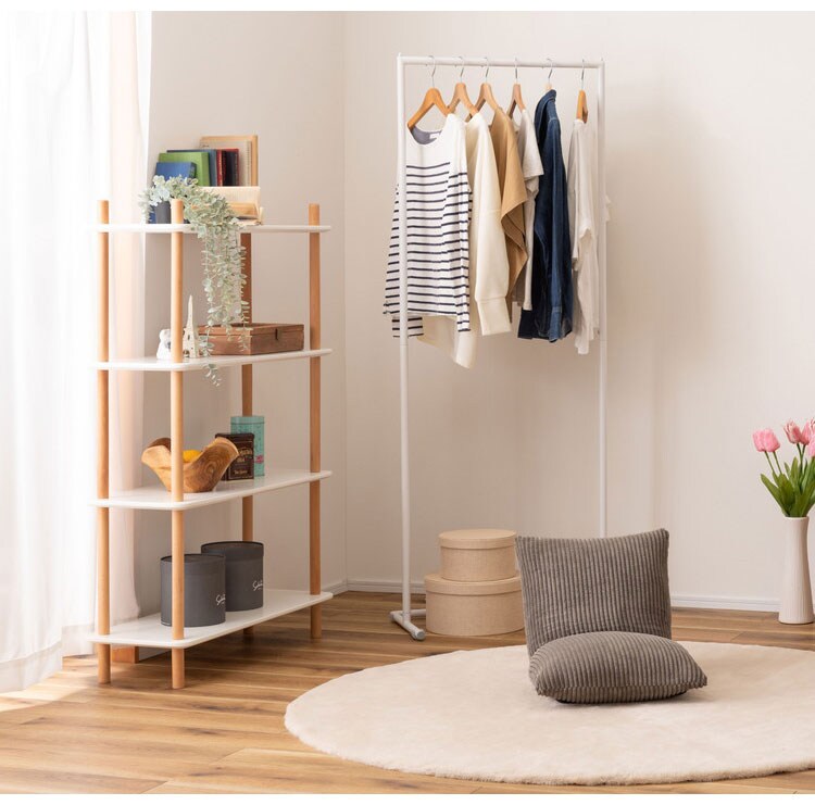 ●ホワイトの棚と天然木のナチュラルカラーな支柱が優しい印象を与えてくれるラックです。使う場所を選ばず様々な場所で活躍してくれるラックは、オープンタイプなので、壁面に設置するだけでなく空間の間仕切りとしても、抜け感を与えながら圧迫感無く使用する事が出来ます。
