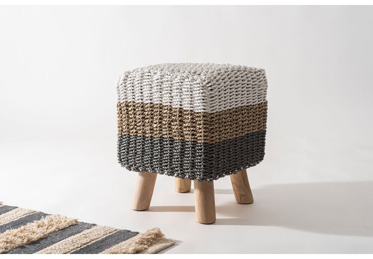 スツール 椅子 イス 天然木 チーク パンダンリーフ 四角 おしゃれ モダン ナチュラル 編み込み リビング キッチン 寝室 腰掛け【送料無料】