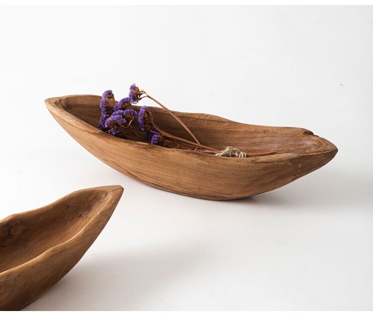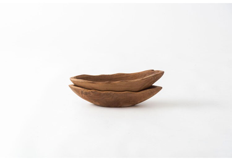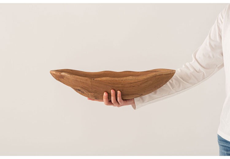 チーク材をくり抜いて作られたお皿。