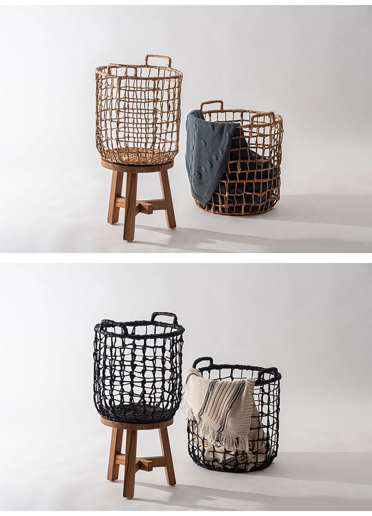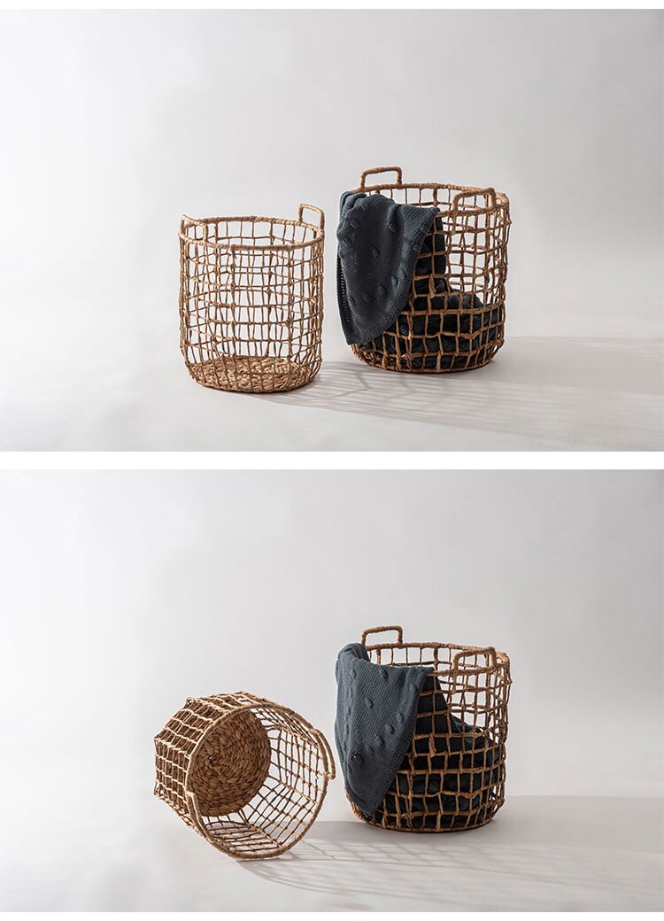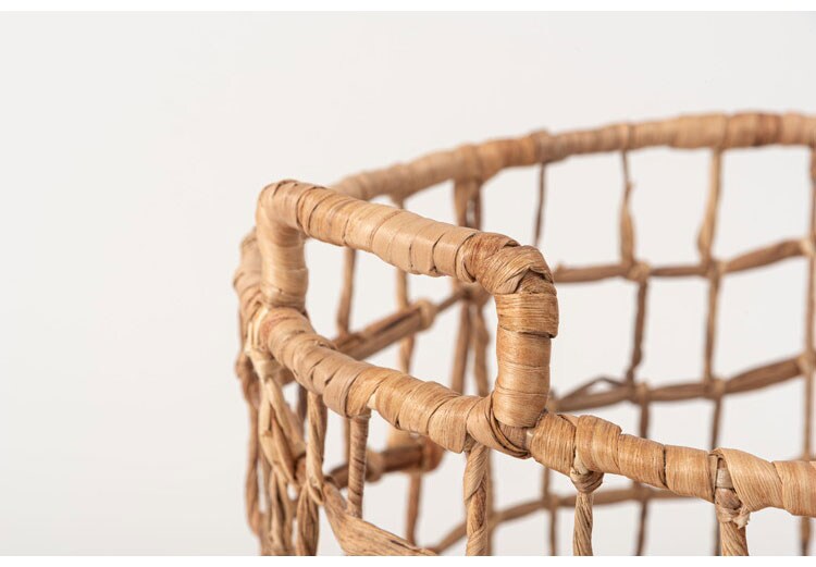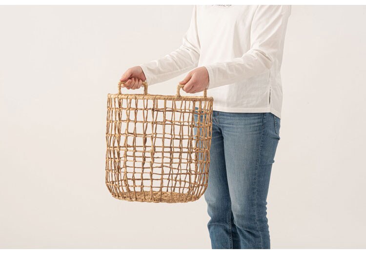 天然ウォーターヒヤシンスを細身のワイヤーにシンプルに編み込んだバスケット。