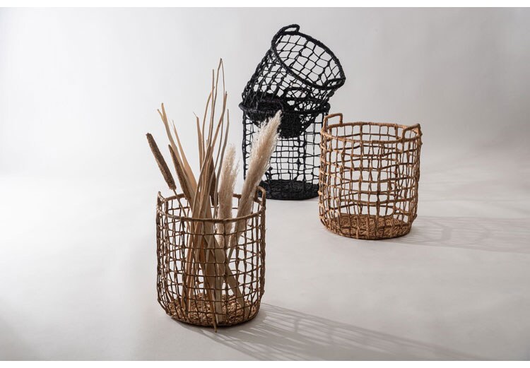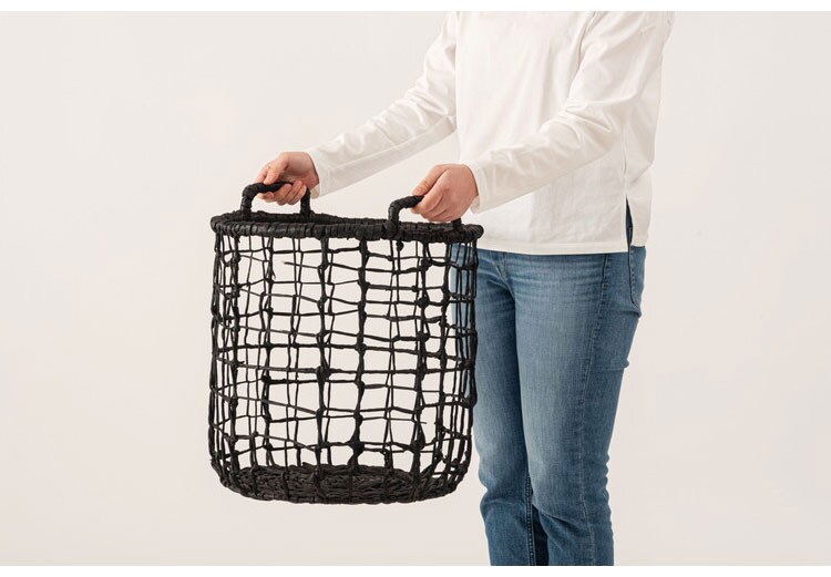 天然ウォーターヒヤシンスを細身のワイヤーにシンプルに編み込んだバスケット。
