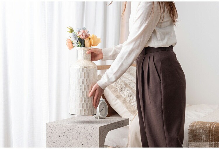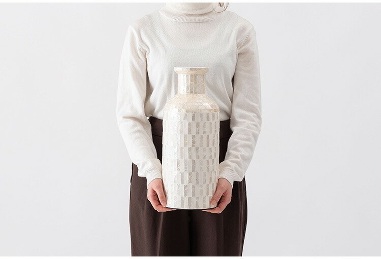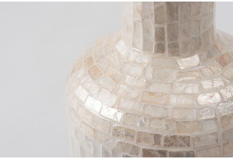 一点一点手貼りされたカピスの表情は、薄い半透明で貝殻独特の光沢や艶が特徴です。古くからインテリアに使われており、アジアン風の家具や雑貨が印象的なカピスの素材感を生かしシンプルで上品な印象に仕上げることで、現代のインテリアにマッチするようにデザインしました。