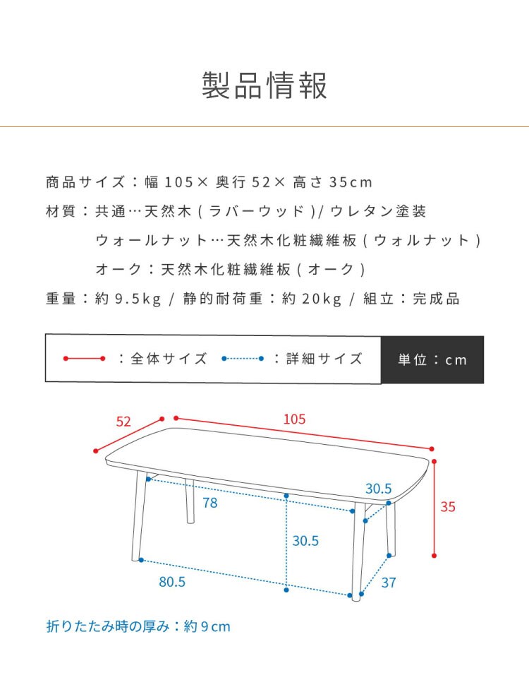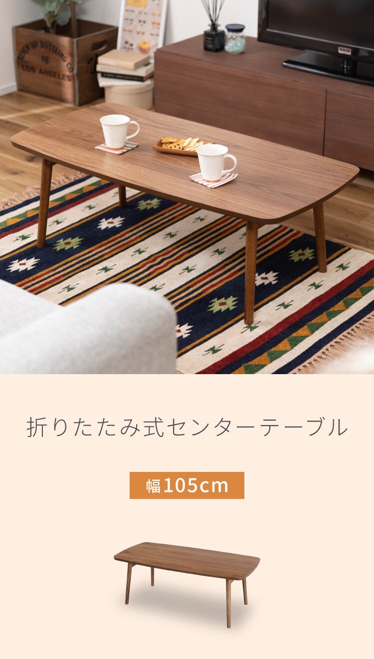 折りたたみテーブル テーブル ローテーブル 折りたたみ 折り畳み 幅105cm 木製 センターテーブル リビングテーブル コーヒーテーブル フォールディングテーブル 天然木 ウォルナット シンプル レトロ【送料無料】