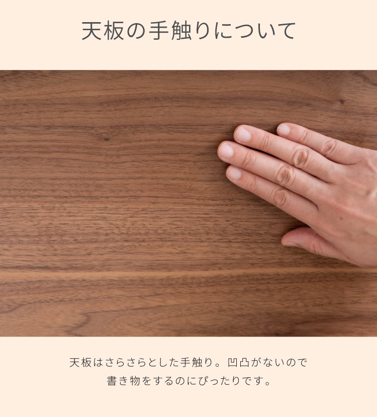 天板には世界三大銘木の一つに数えられる天然木ウォルナット(突板)を使用。美しい木目と上品な佇まいが魅力。