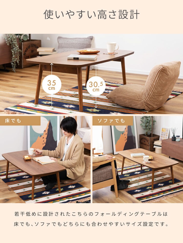 床に座っても、ソファの前に置いても使いやすい、高さ35cmのセンターテーブル。