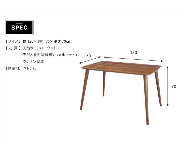 【素材】天然木(ラバーウッド) 天然木化粧繊維板(ウォルナット) ウレタン塗装 組立