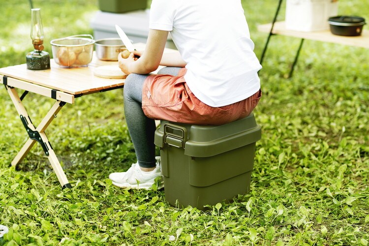 アウトドア キャンプ 収納ボックス 収納ケース 容量20リットル 箱 アウトドア 衣類収納 おもちゃ箱 フタ付き 座れる スツール プラスチック シンプル ミリタリー おしゃれ【送料無料】