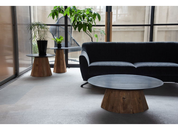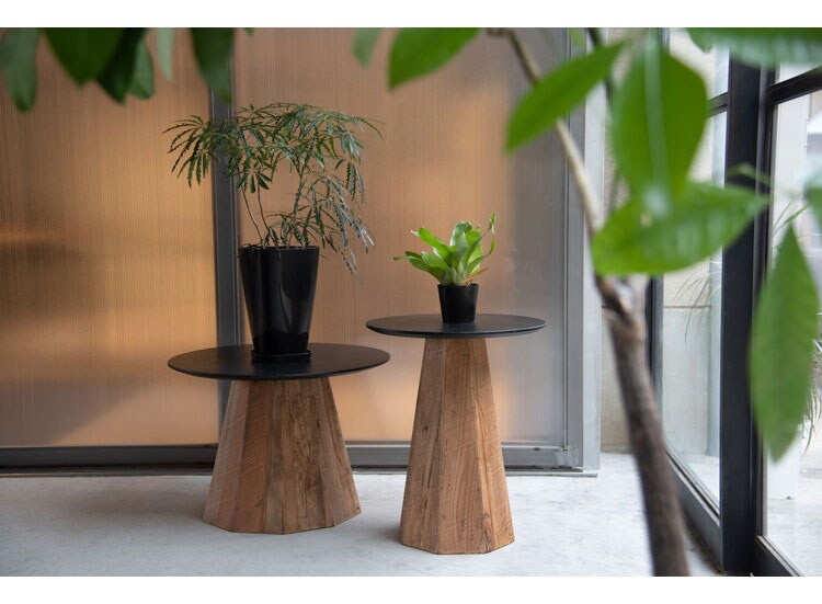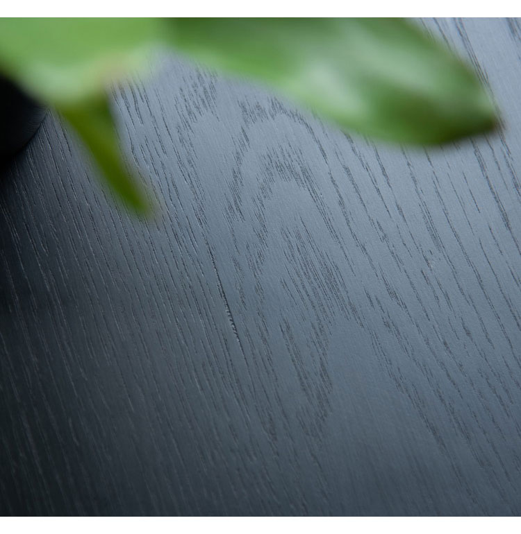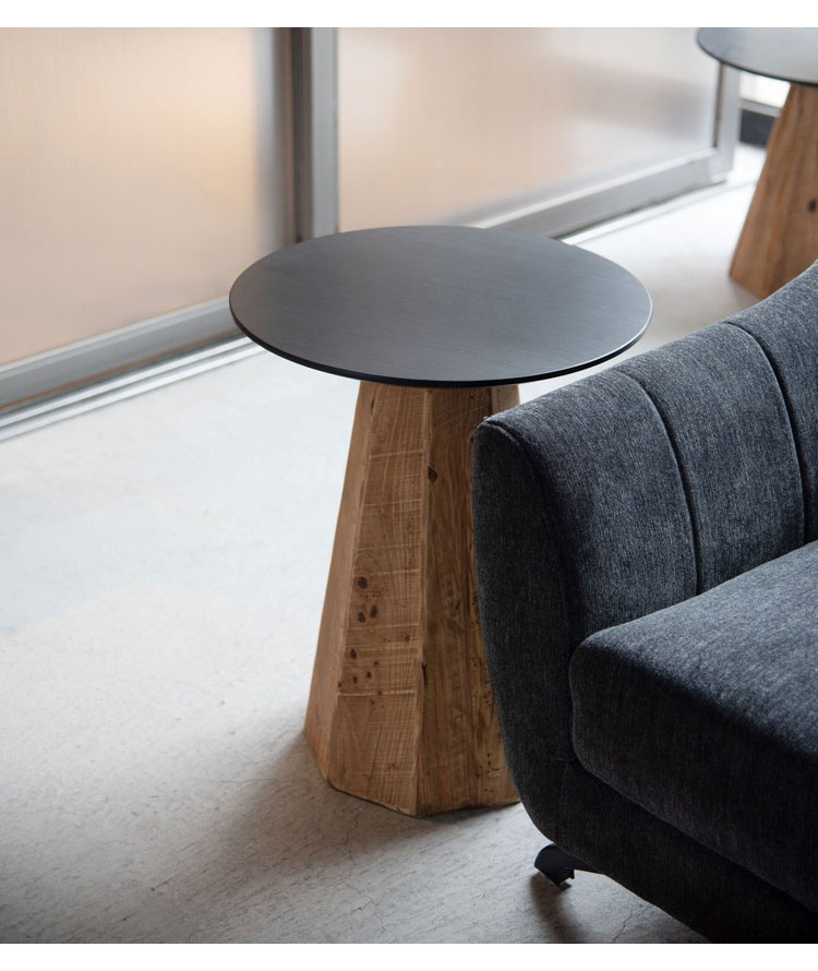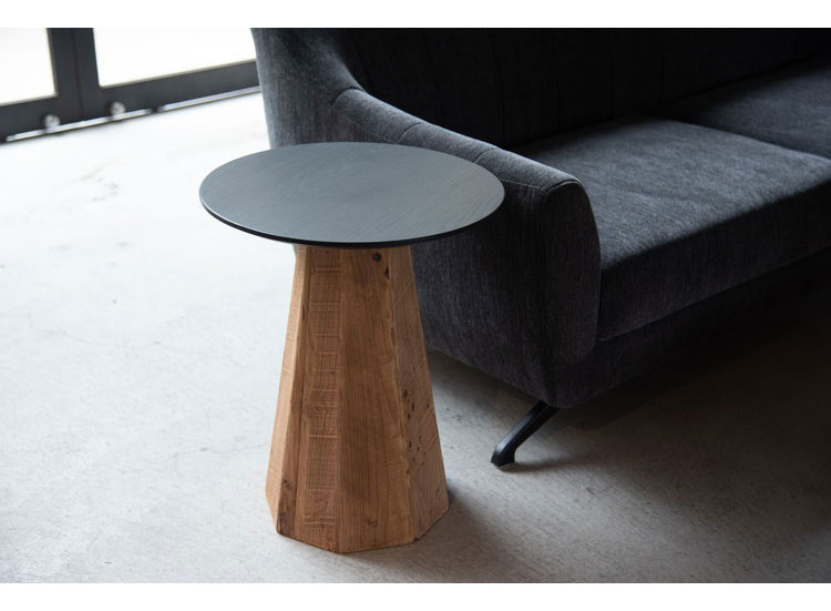 オークの美しい木目を残して塗装された黒い天板とひとつひとつ表情の違うパイン古材の脚が上品さを出しつつ、ぬくもりを感じさせるデザインのテーブル。ナチュラルやモダンなど、様々なテイストに馴染みます。
