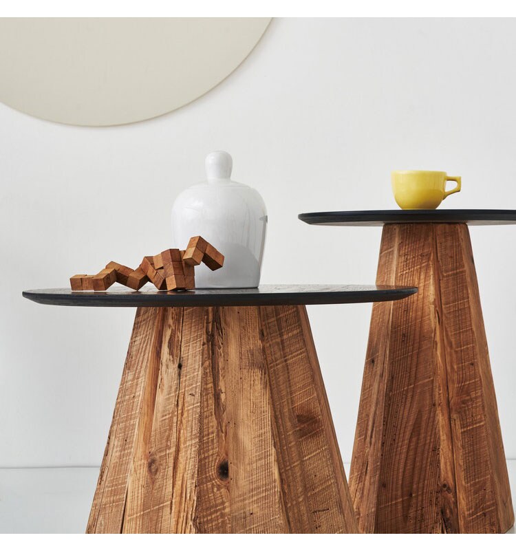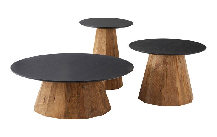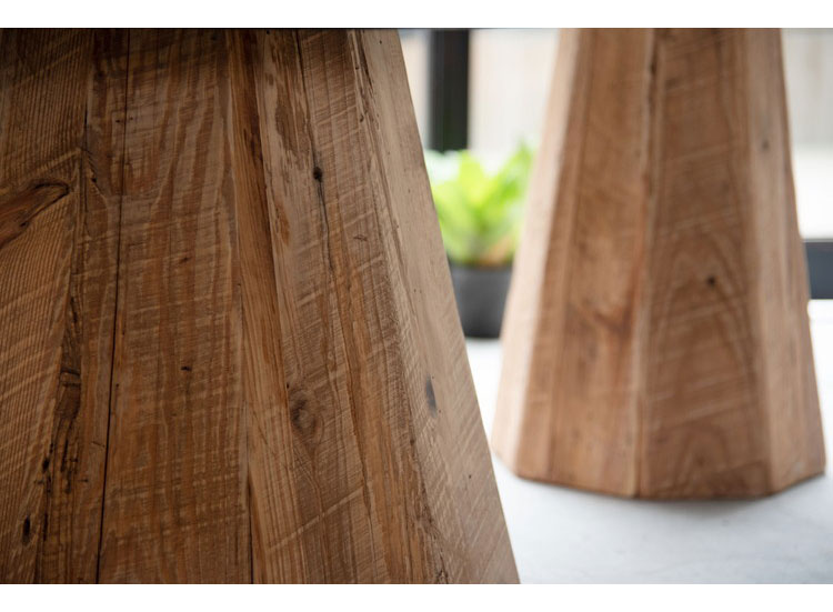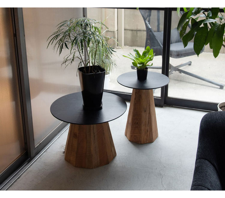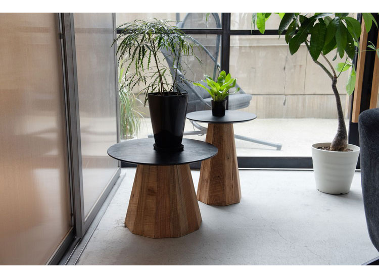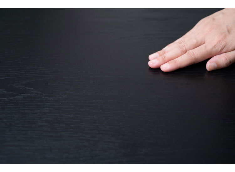 オークの美しい木目を残して塗装された黒い天板とひとつひとつ表情の違うパイン古材の脚が上品さを出しつつ、ぬくもりを感じさせるデザインのテーブル。ナチュラルやモダンなど、様々なテイストに馴染みます。
