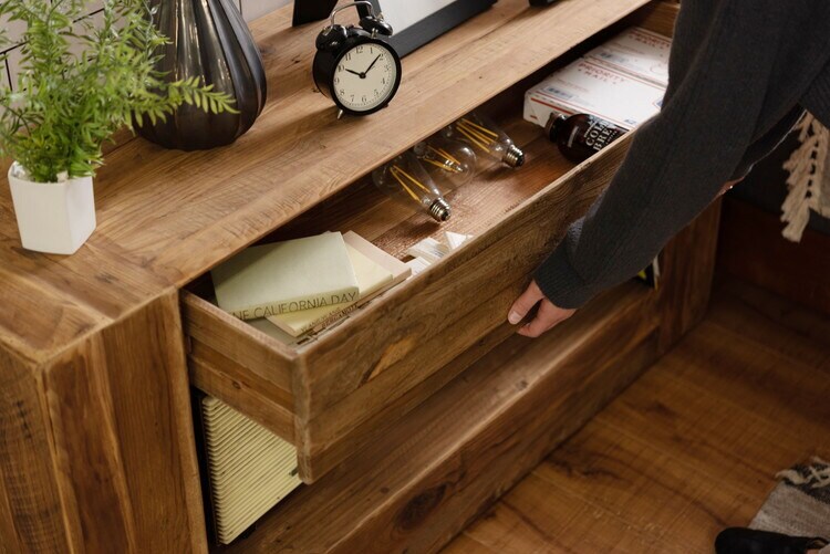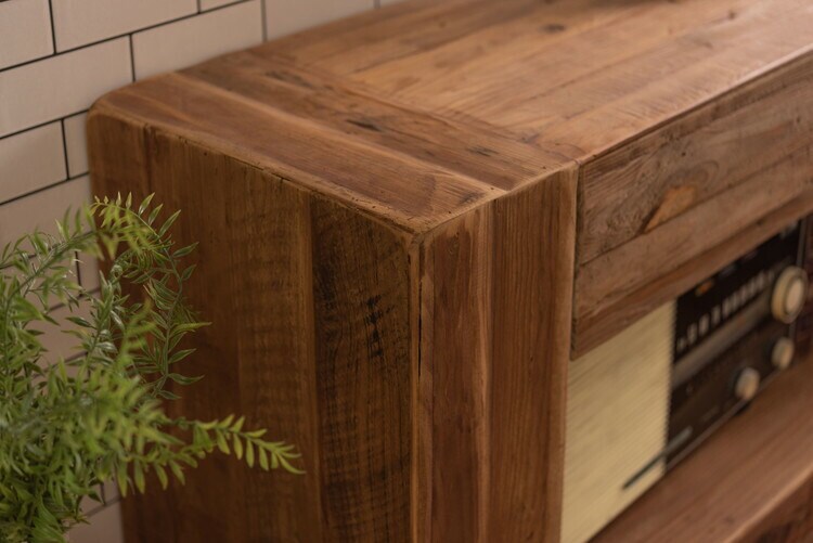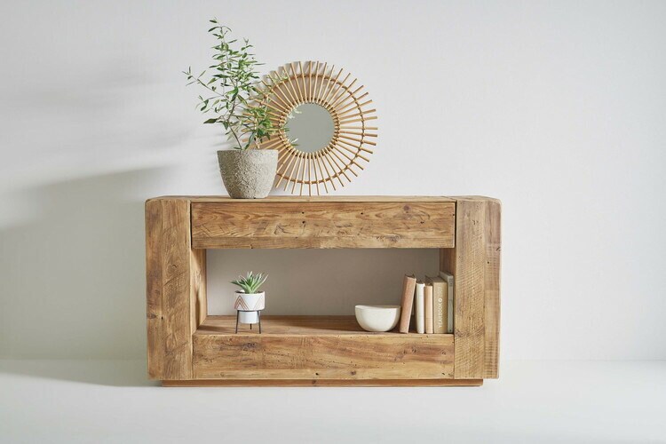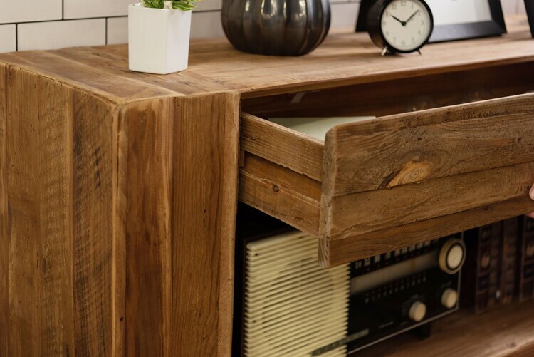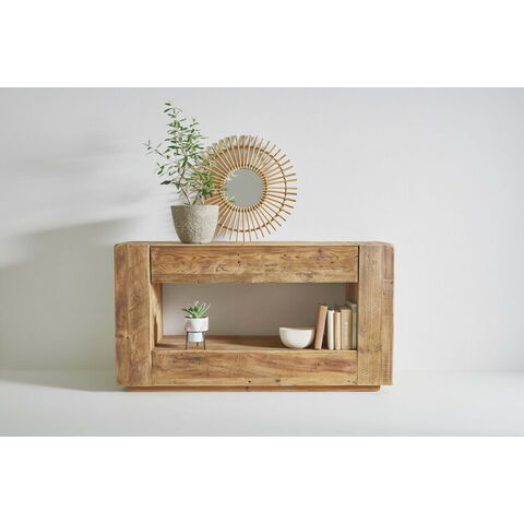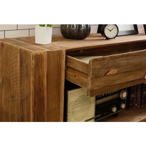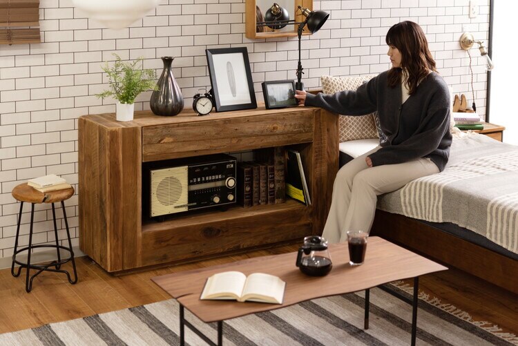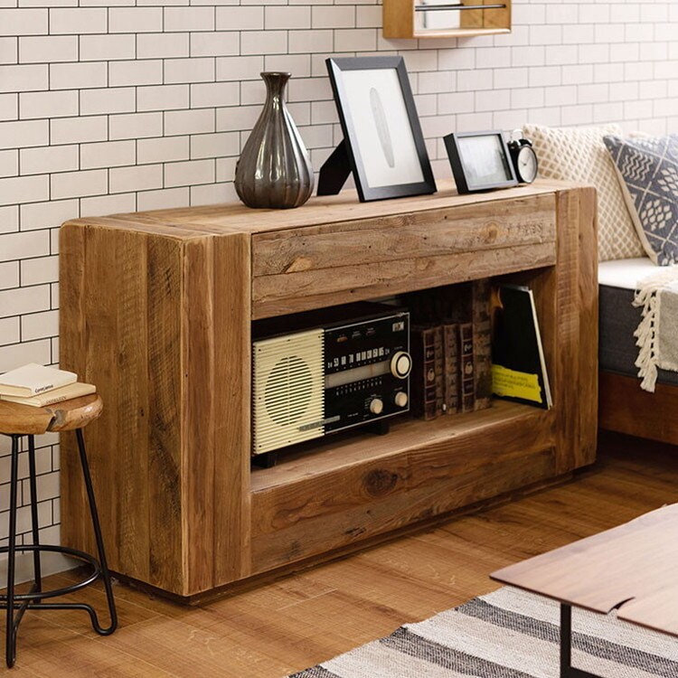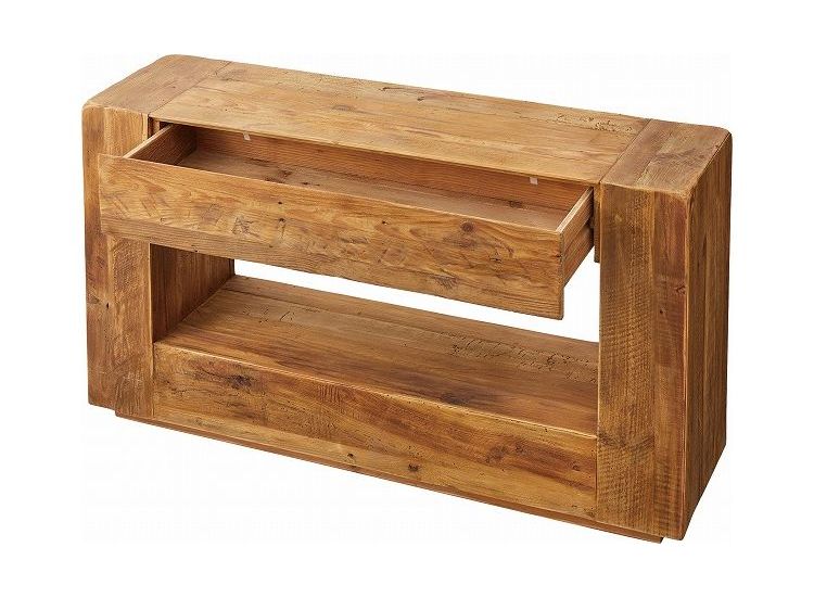 コンソール パイン古材 ラック 収納 ディスプレイ コレクション 引き出し付き 古材 天然木 パイン材 ナチュラル 面取り加工【送料無料】