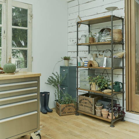 シェルフ 幅88×奥行45×高さ180 天然木 パイン ラッカー塗装 スチール【送料無料】