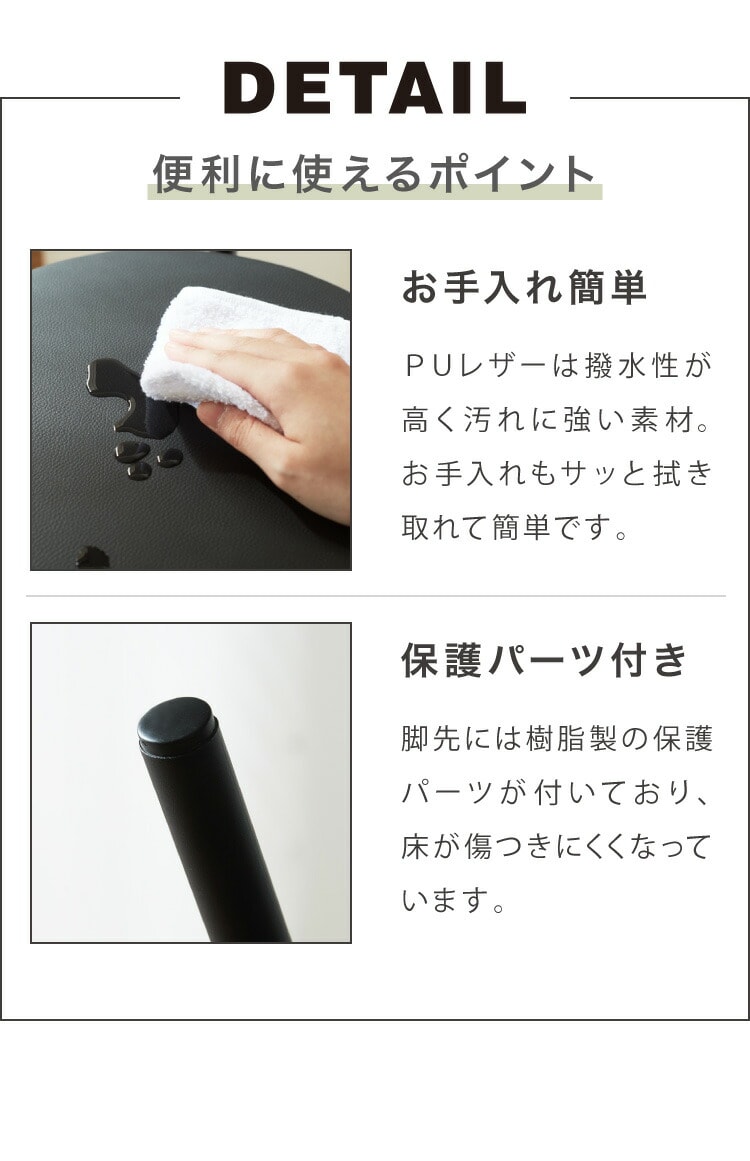 座面・背もたれ部分:PUレザー、ウレタンフォーム、天然木