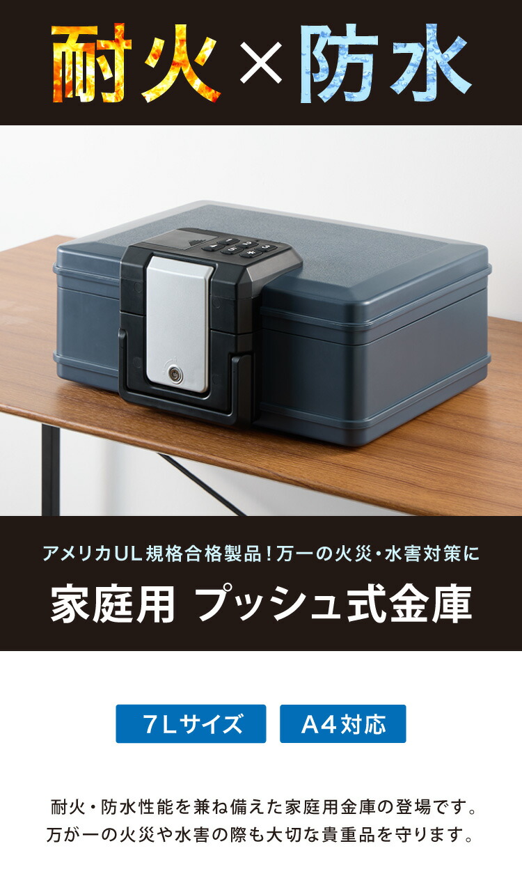 金庫 耐火 防水 家庭用 耐火金庫 手提げ 小型 7L A4サイズ パスポート 防災 防災対策 おしゃれ 手提金庫 家庭用金庫 家庭用耐火金庫 耐水 頑丈 ポータブル 持ち運び 鍵 プッシュ式【送料無料】