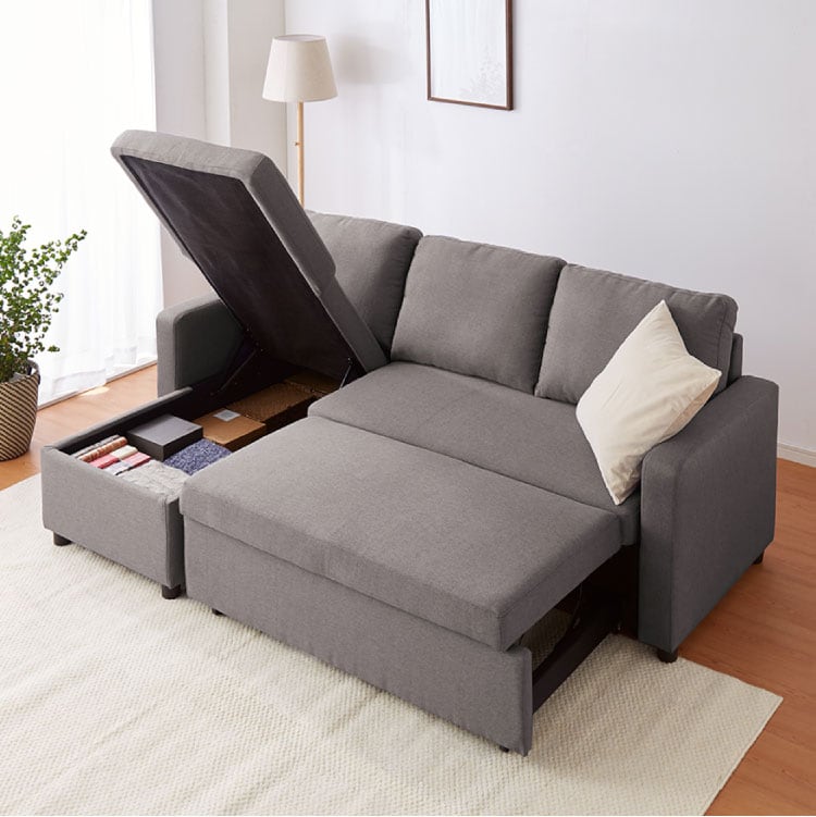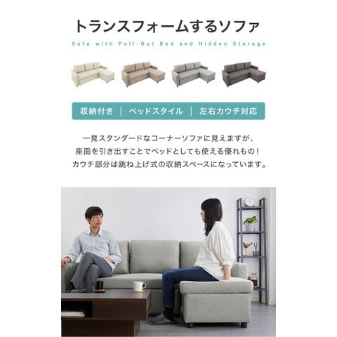 ソファ、2人掛け、3人掛け、4人掛け、ソファベッド、ソファー、跳ね上げ式ソファ、跳ね上げソファ、収納、ソファーベッド、ベッド、寝れる、カウチソファ、L字ソファ、モダン、北欧、3P、3Pソファ、リビング、ごろ寝、ファブリック、お昼寝