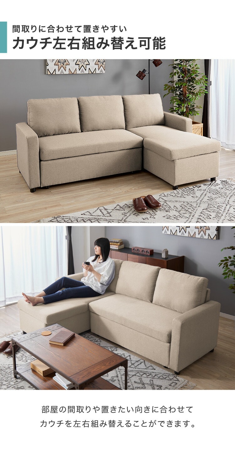 跳ね上げ式 ソファベッド 3人掛け 幅202cm 収納付き L字 3P おしゃれ 北欧 ファブリック カウチソファ コーナーソファ ソファーベッド 収納 お昼寝 カウチ リビング 大きめ ベッド 収納ソファ【送料無料】