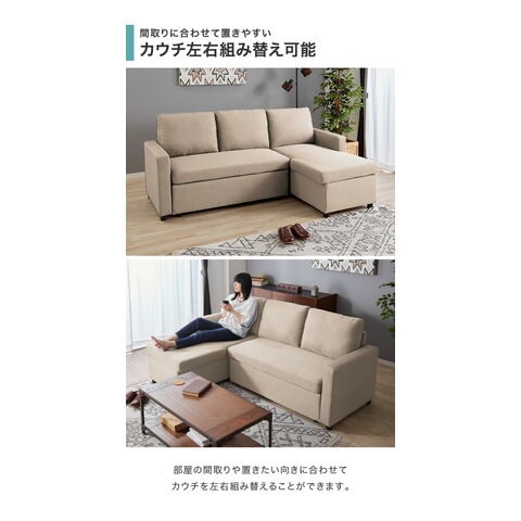 お部屋や間取りに合わせてカウチ部分を左右自由に組み変えることができます。