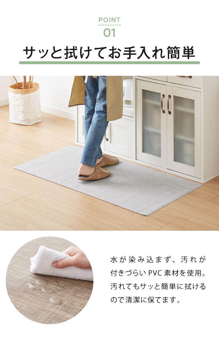 キッチンマット、120cm、拭ける、洗濯不要、60×120、お手入れ簡単、滑り止め、厚さ3、おしゃれ、北欧、シンプル、ナチュラル、テキスタイル調、ソフトマット、PVC、クッション、キッチン、マット、台所、台所マット、保護マット、フロアマット