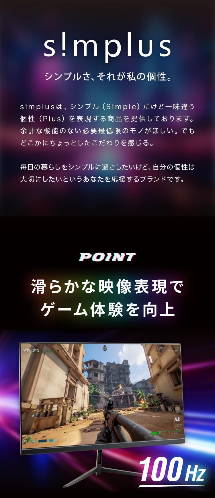 simplus 23.8インチ ゲーミングモニター PCモニター 100Hz 1920×1080 FHD 1080p 1ms高速応答 薄型 液晶ディスプレイ ノングレア 非光沢モニター パソコン VA チルト調整 シンプラス SP-NMT23【メーカー保証1年】