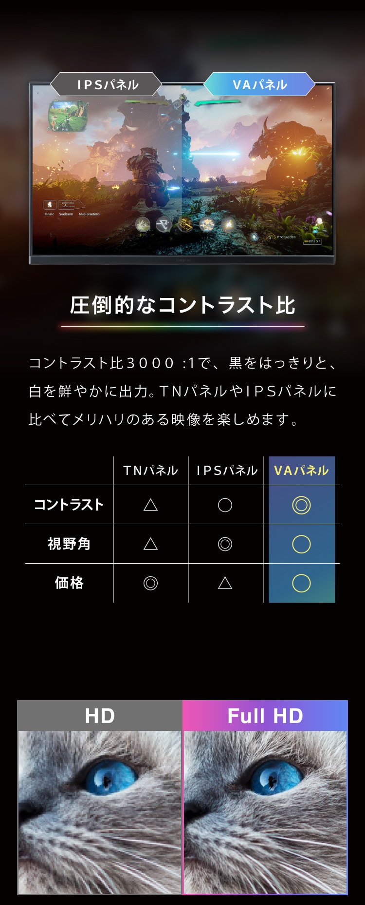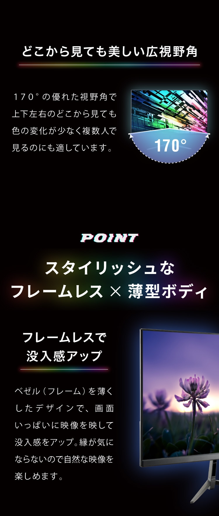 → 色の表現力と視野角に優れ、目にもやさしいバランスの取れた画質。
