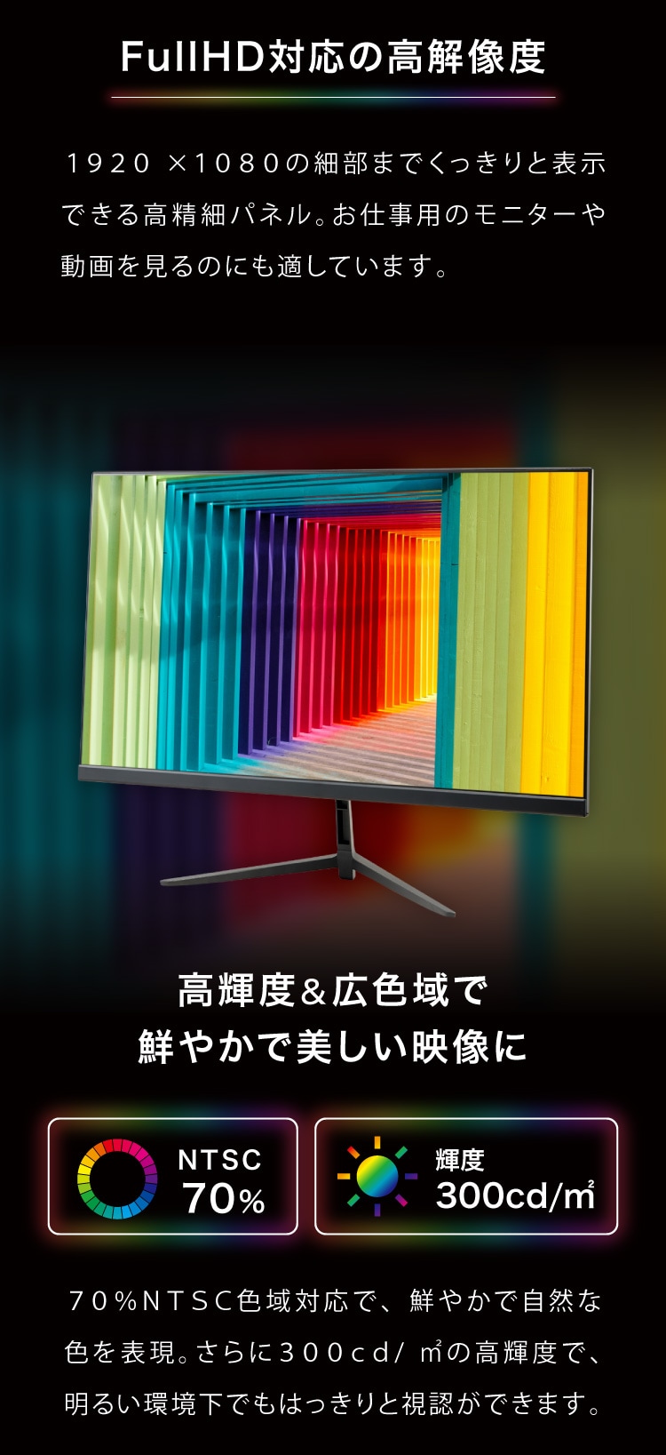 輝度:300cd/平方メートル