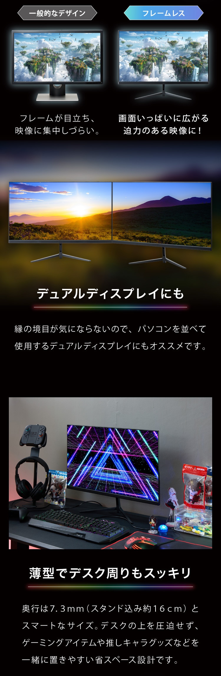 → スタイリッシュな見た目で、マルチモニターにもぴったり。