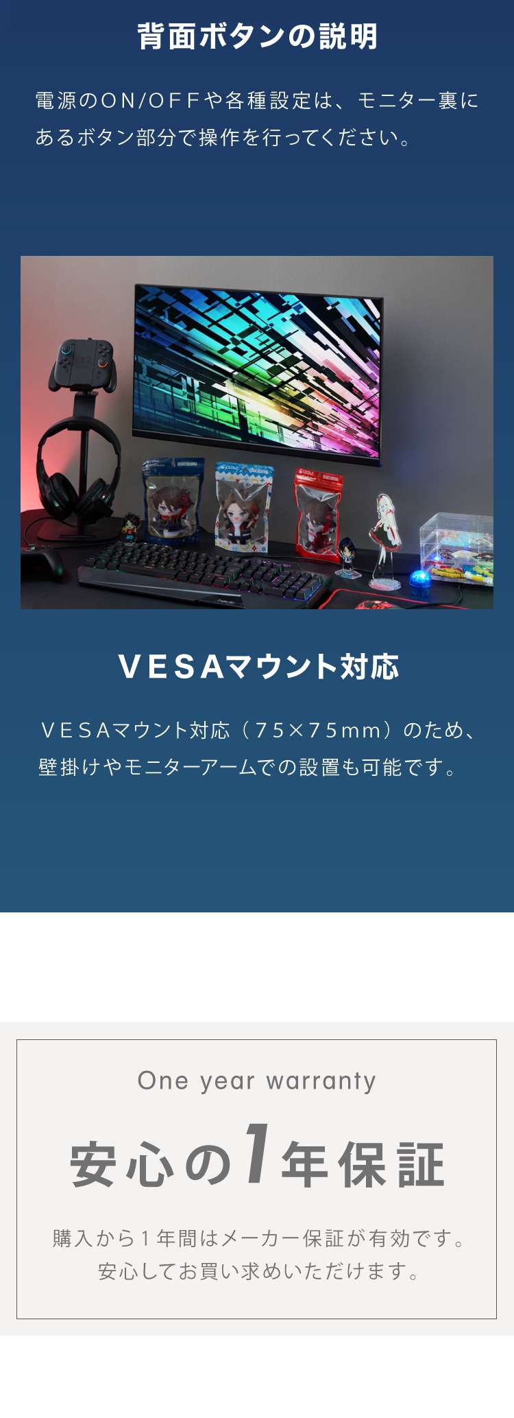 → モニターアームや壁掛けにも対応し、自由な設置が可能。