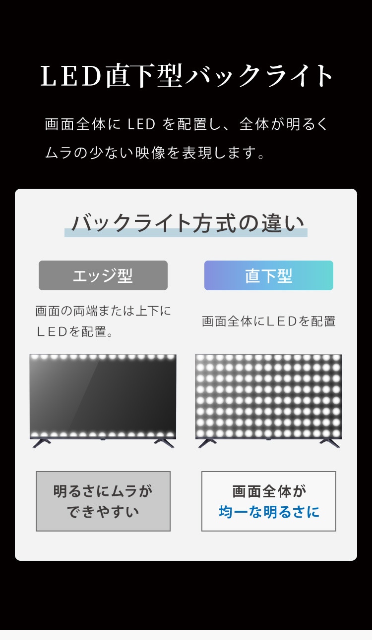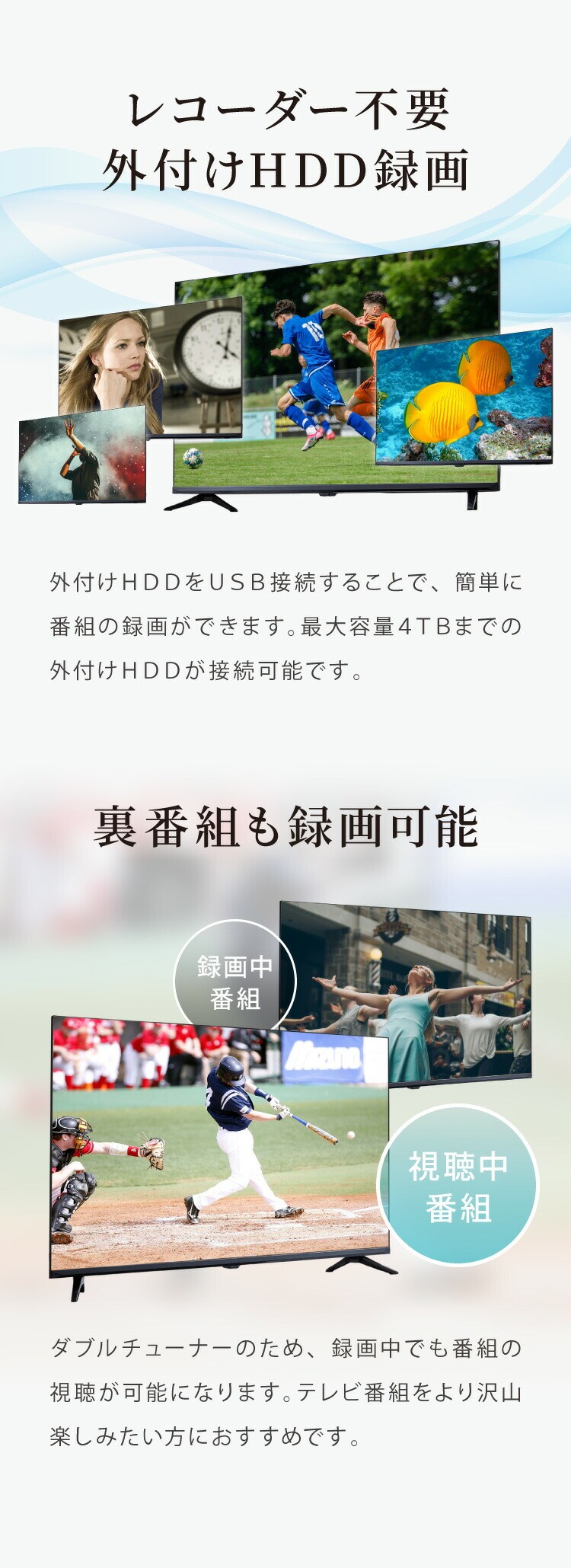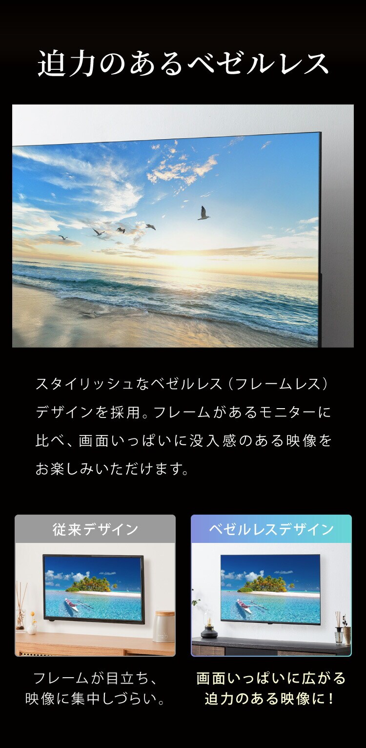 直下型LEDバックライト、43V、43v型、番組録画、43インチ、フレームレス、ベゼルレス、TV、テレビ、日本メーカーエンジン、リビング、一人暮らし、家族、モニター、3波