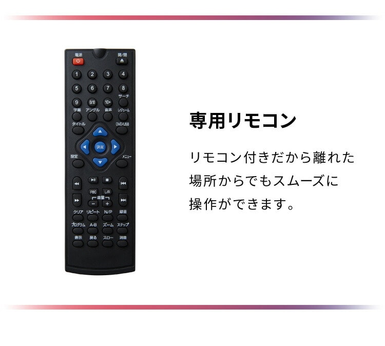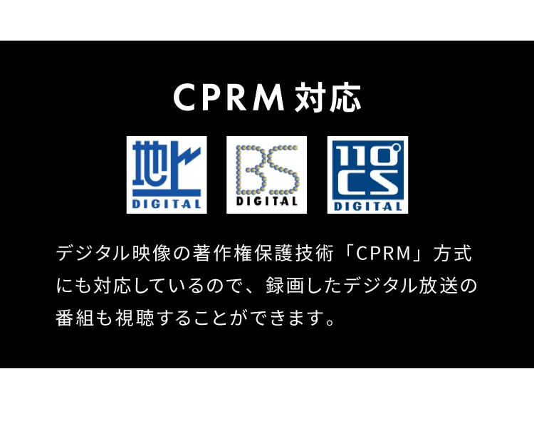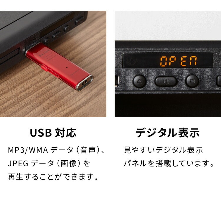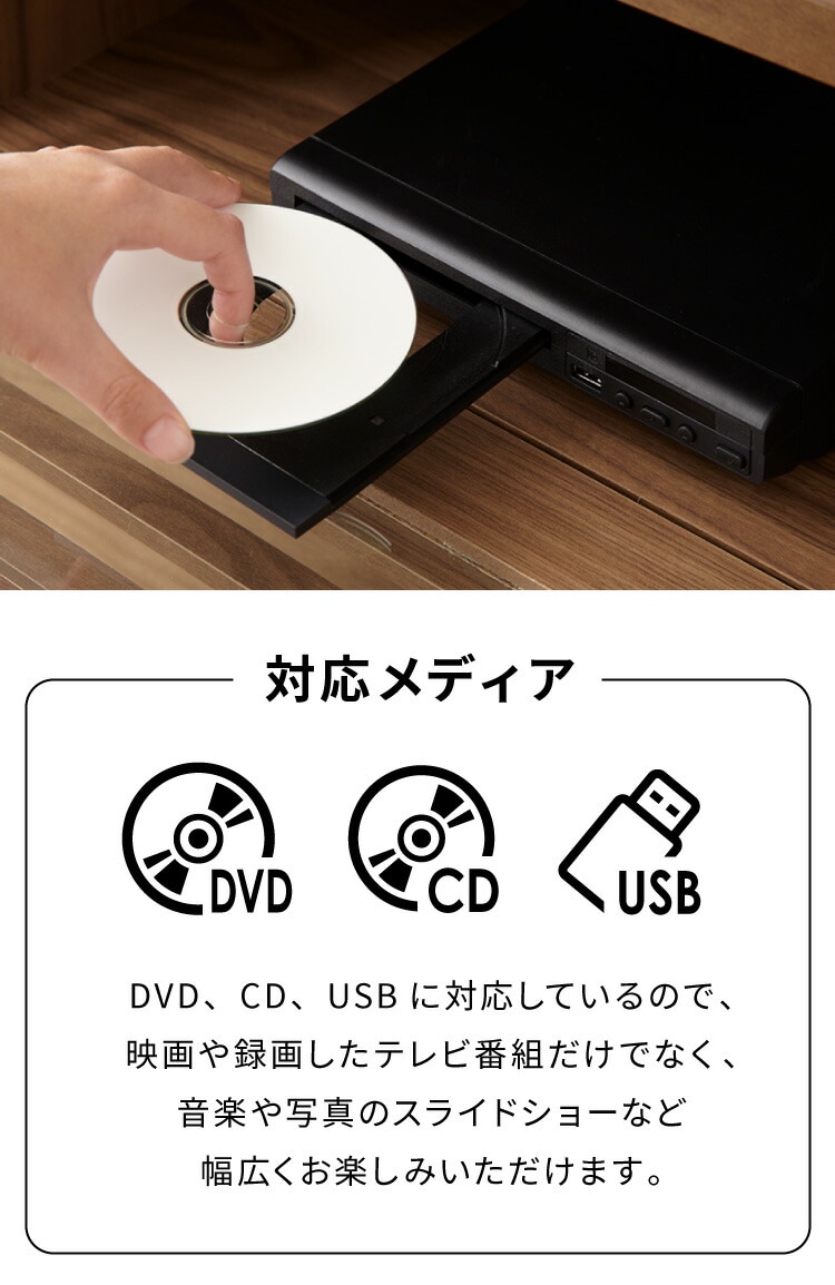 対応フォーマット:DVD-Video、DVD-VR(CPRM)、VND、CD-DA、MP3、JPEG