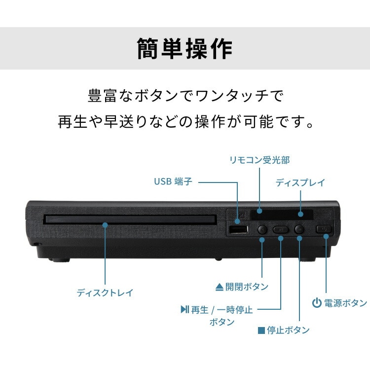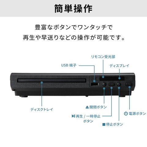 simplus DVDプレイヤー AVケーブル 付属 リモコン付き USBメモリ対応 1年メーカー保証 ブラック シンプル コンパクト CDプレーヤー シンプラス SP-DVDD-01【送料無料】