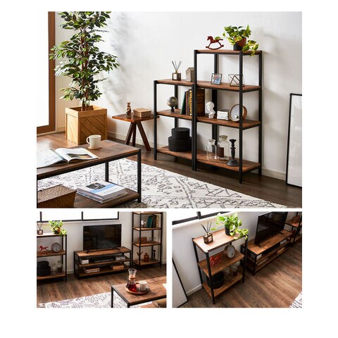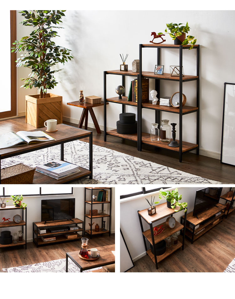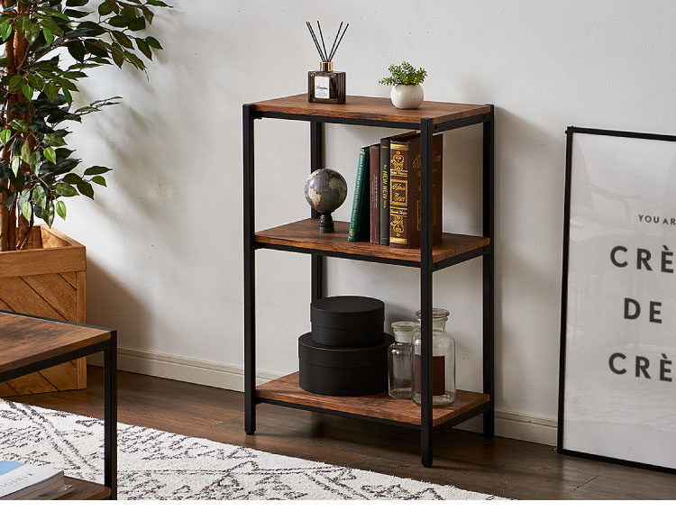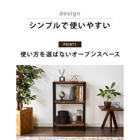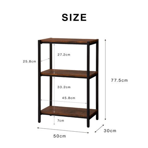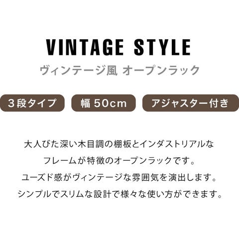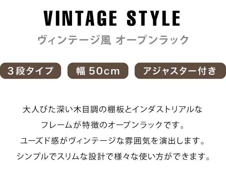 ヴィンテージ 三段ラック 3段 ラック 幅50 奥行き30 収納 オープンラック スチールラック 茶 ブラウン シェルフ 木目調 おしゃれ 棚 本棚【送料無料】