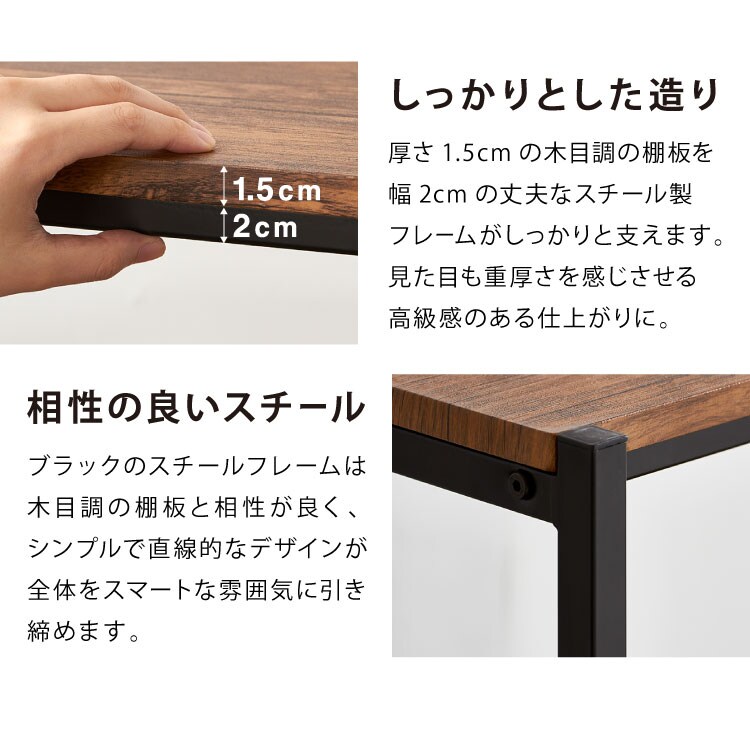 スリムで低めに設計された3段ラックです。