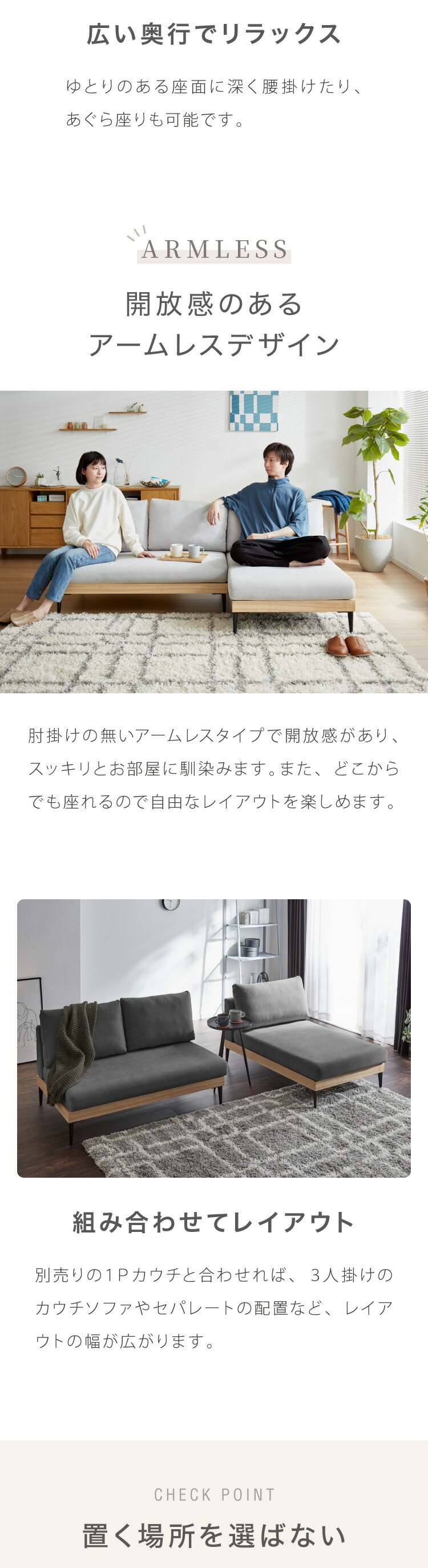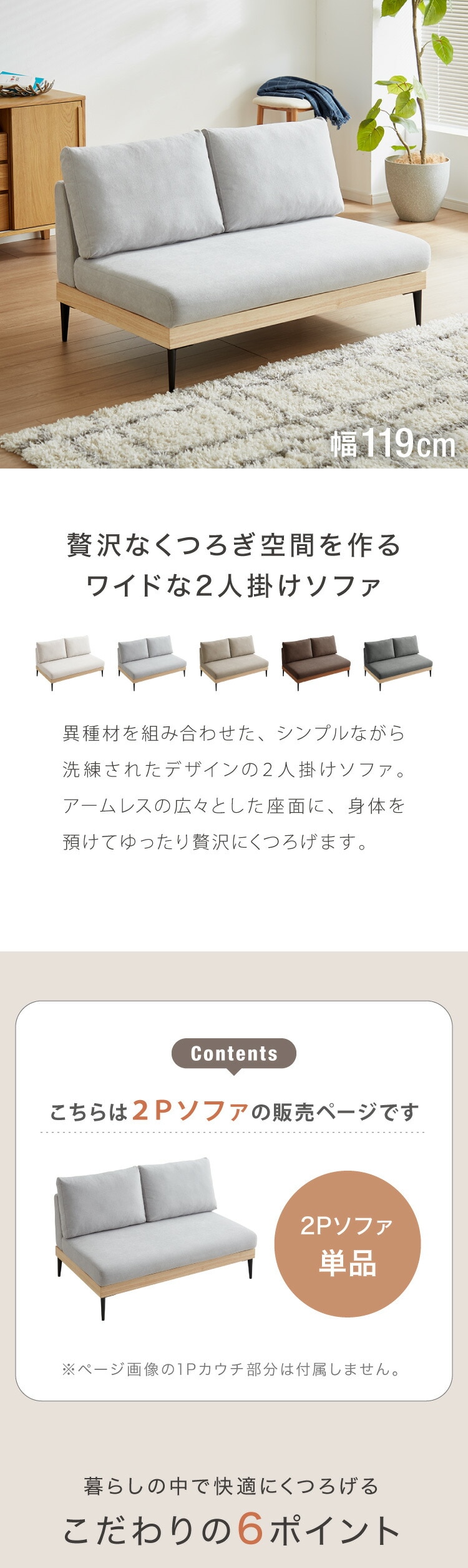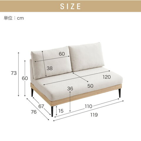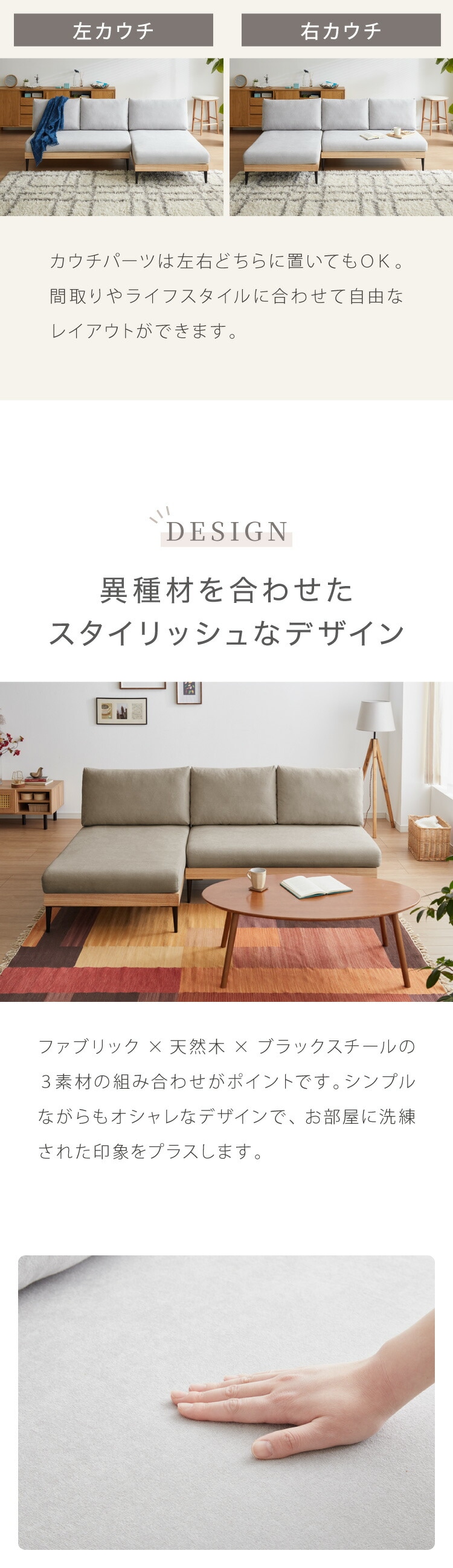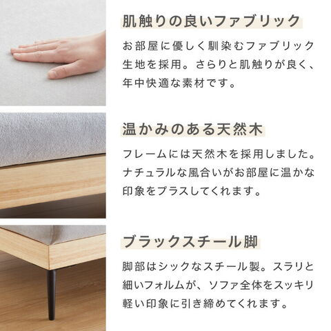 ファブリック×天然木×ブラックスチールの3つの異素材を組み合わせたデザイン性抜群のソファです。