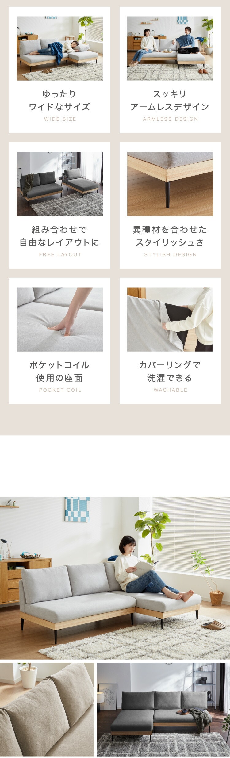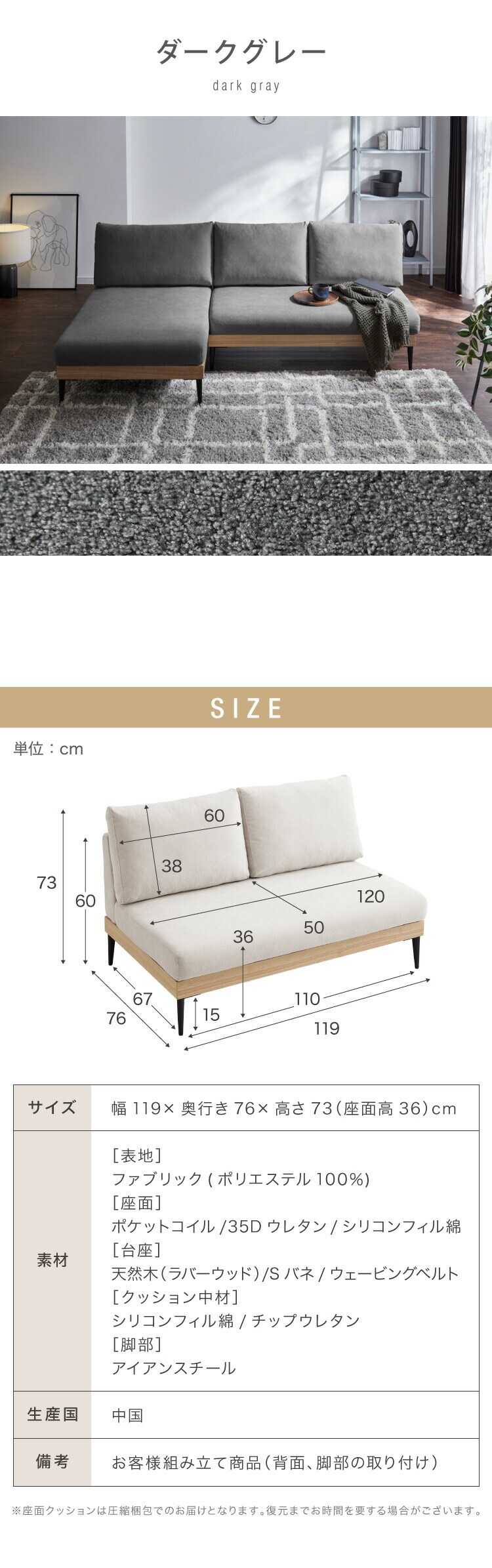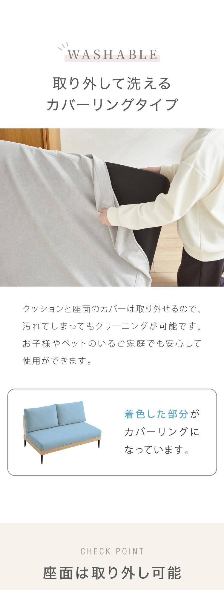 ソファー 2人掛け 単品 ソファ カバーリング 洗える 幅120 カバーリングソファ 木製 ポケットコイル 二人掛け 二人用 2.5人掛け ウッドフレーム 2WAY コーナーソファ sofa ひろびろ座面 北欧【送料無料】