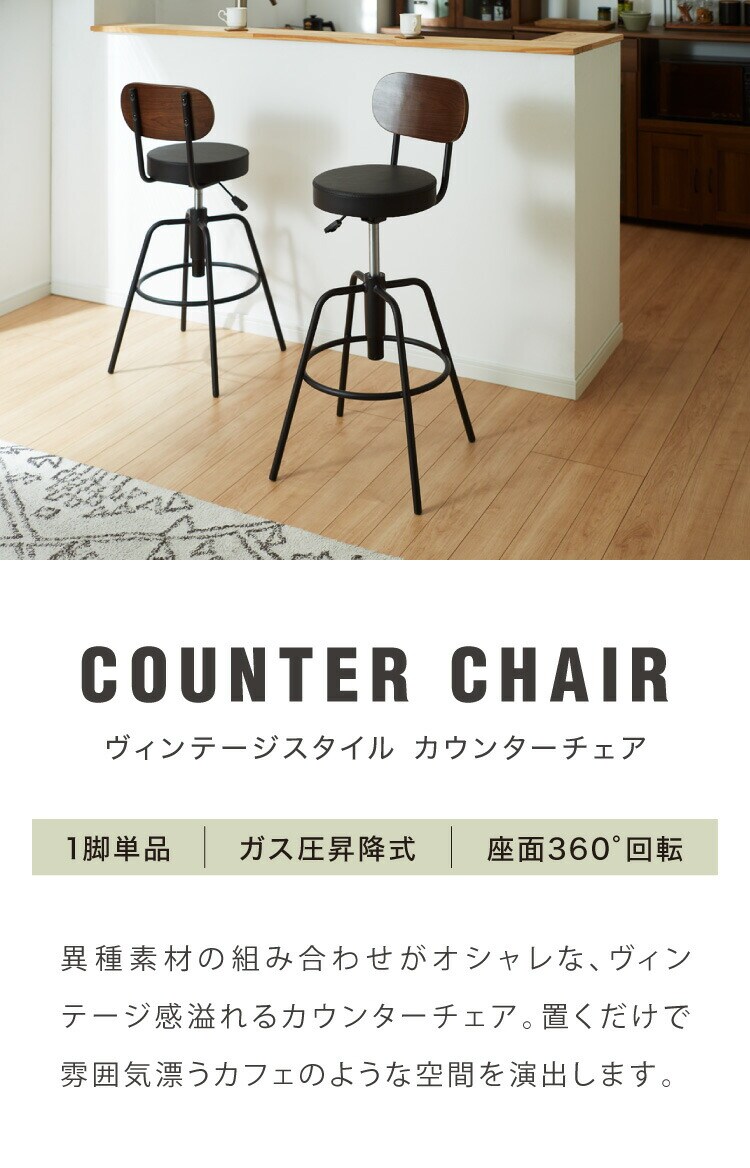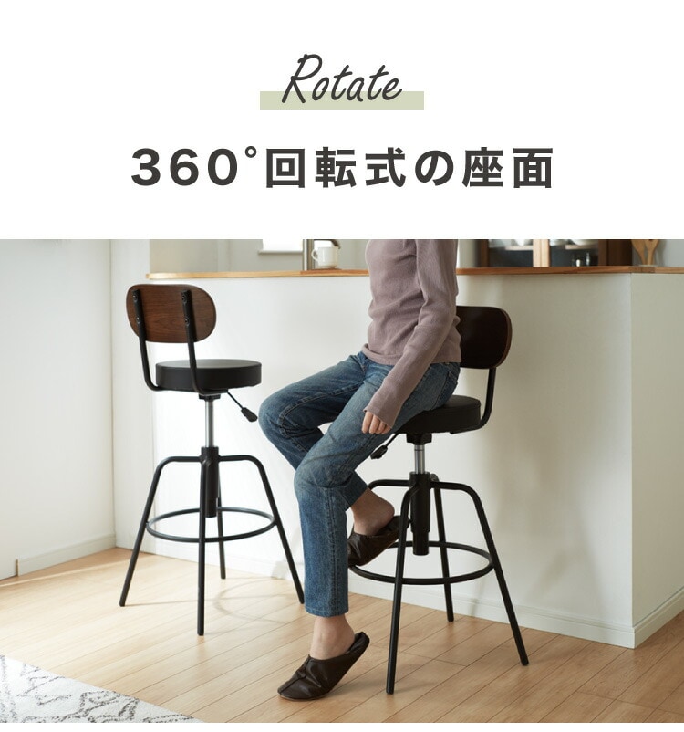 カウンターチェア、単品、バーチェア、バースツール、店舗、レザー、ヴィンテージ、西海岸、おしゃれ、シンプル、回転式、ハイスツール、ハイチェア、昇降、カフェ風、椅子、イス、天然木、ダイニング、リビング、キッチン、ダイニングチェア、リビングチェア、インダストリアル、ブラウン、ブラック、デスクチェア、一人暮らし、二人暮らし