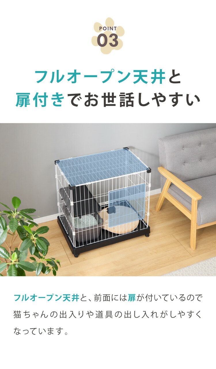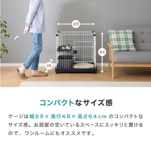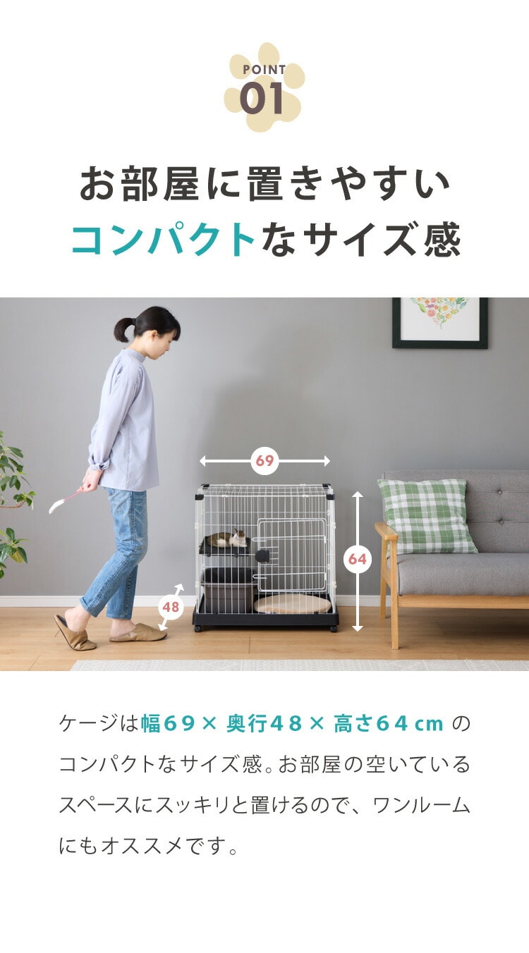 猫 ケージ 1段 おしゃれ スリム コンパクト キャスター付 脱走防止 お手入れ簡単 ペットケージ キャットケージ キャット ケージ キャットハウス ペットハウス 室内 屋内 保護 保護猫 ハウス【送料無料】