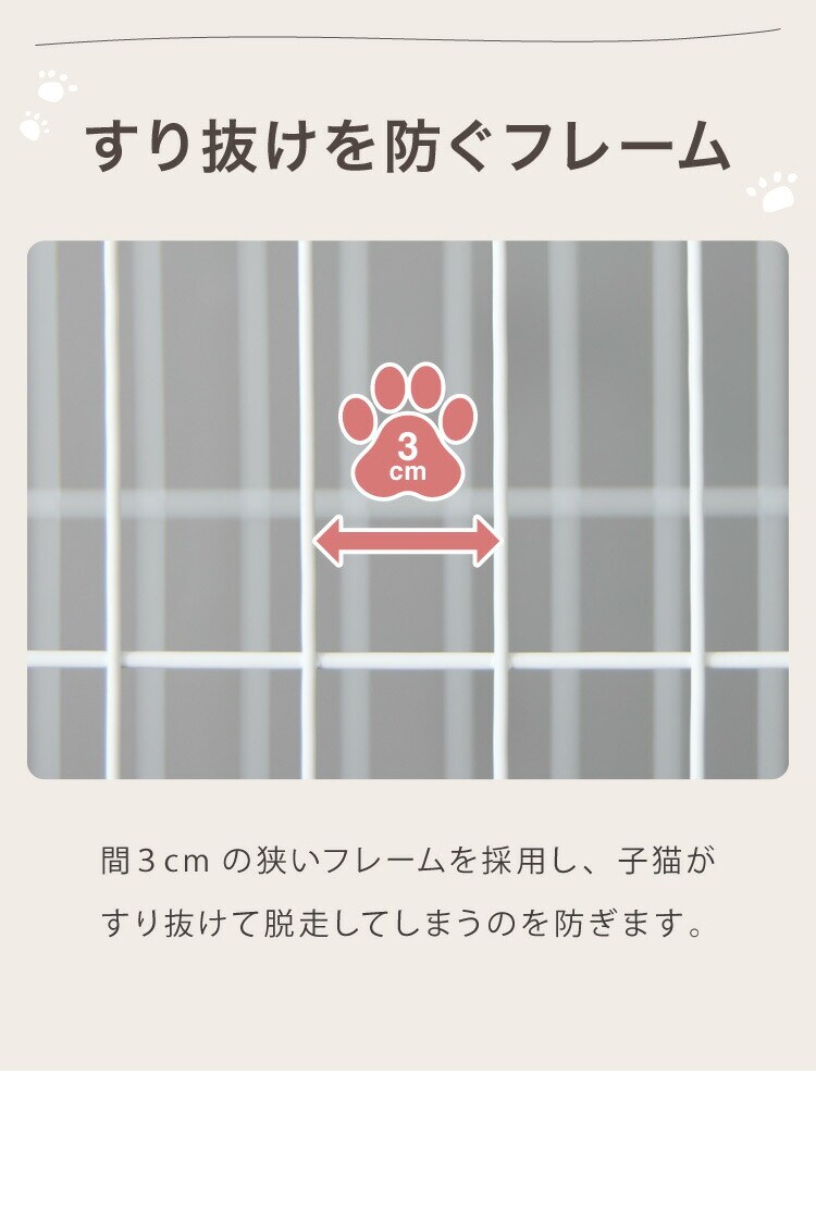 ・すり抜けを防ぐ隙間3cmフレーム