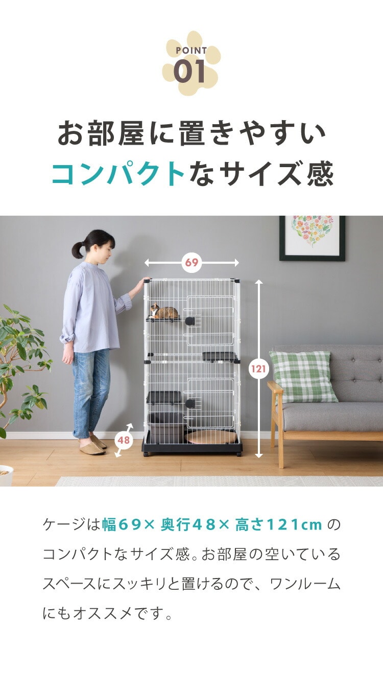 猫 ケージ 2段 おしゃれ スリム コンパクト キャスター付 脱走防止 お手入れ簡単 ペットケージ キャットケージ キャット ケージ キャットハウス ペットハウス 室内 屋内 保護 保護猫 ハウス【送料無料】