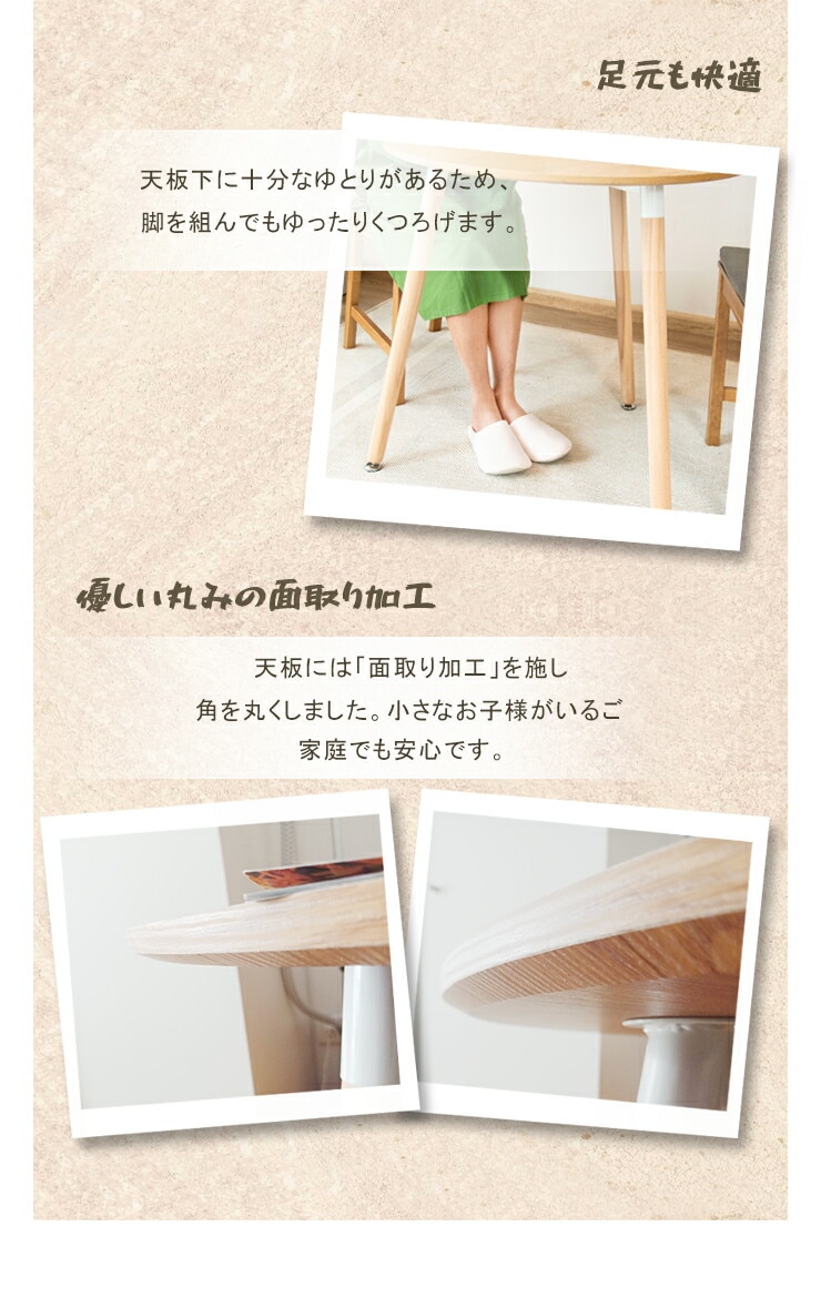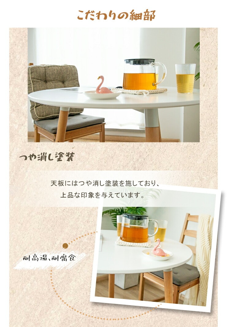 ・角のないラウンドテーブルのため省スペースでお部屋を圧迫しません