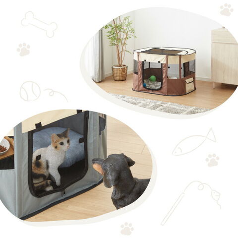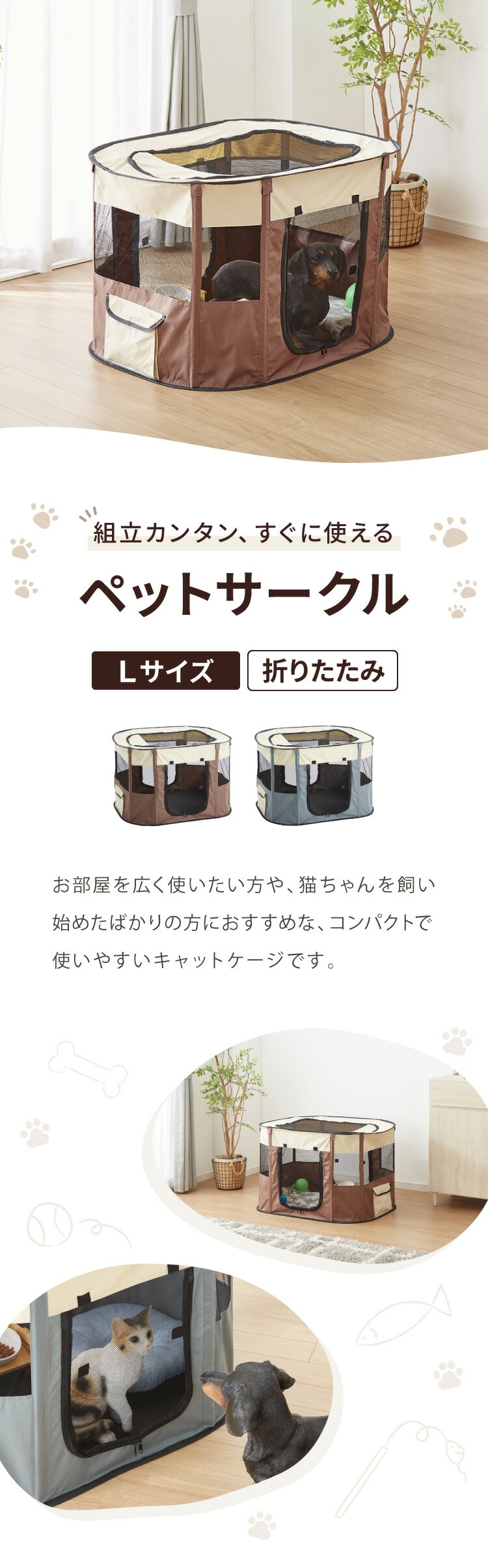 ペットサークル、ペットケージ、ペットハウス、プレイサークル、ドライブボックス、メッシュサークル、キャリーケース、キャリーバッグ、折りたたみ、L、小型犬、中型犬、猫、子猫、収納、飛び出し防止屋根付き、室内、屋外、持ち運び、軽量、コンパクト、アウトドア、旅行、災害対策、避難、分娩室、キャットハウス、ケージ、サークル、Lサイズ、長方形、屋根付き、ペット用、コンパクト、犬猫兼用、犬用、猫用、グレー、ブラウン、犬、ドッグ、猫、ねこ、ネコ、うさぎ、ウサギ、小動物